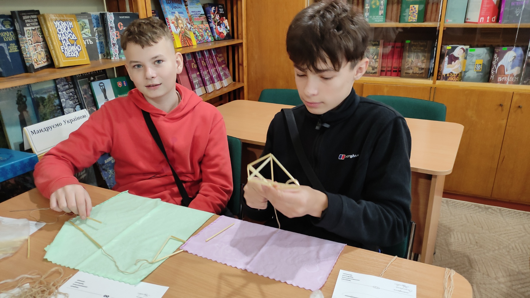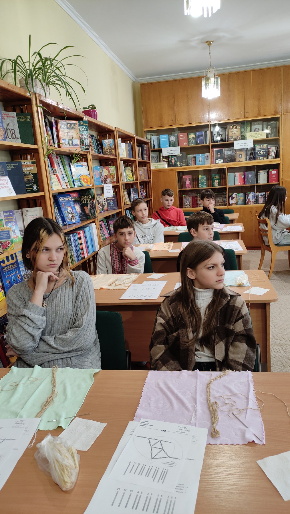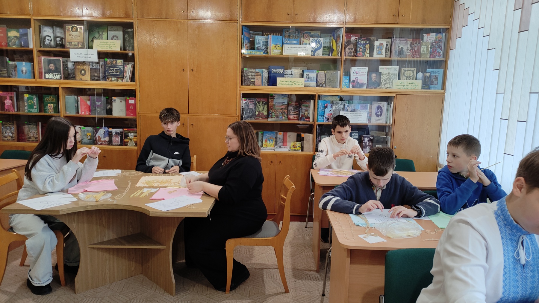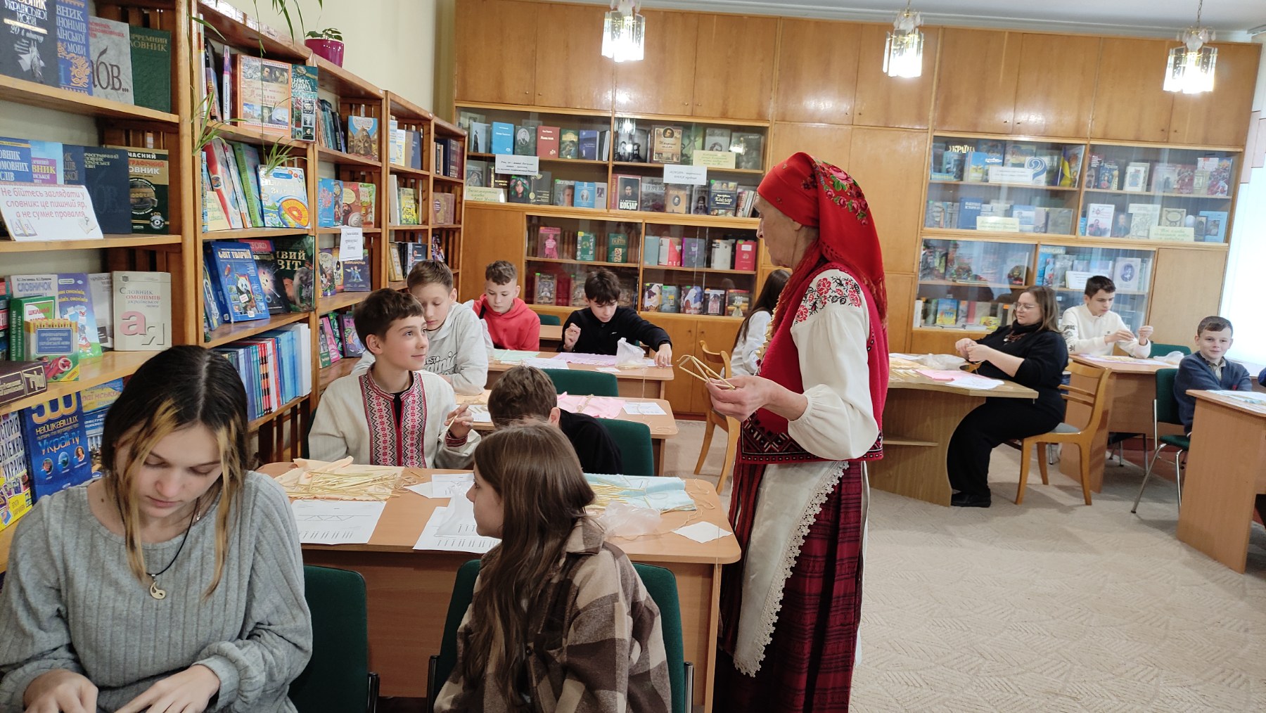 На практичній частині восьмикласники отримали все необхідне: підготовлену солому, міцні нитки, а головне – чіткі схеми для складання об'ємної фігури. Діти вчилися мистецтву з'єднання тонких соломинок у складні пірамідальні модулі, які згодом збираються в єдину, рухливу конструкцію. Це заняття вимагало неабиякої уваги, терпіння та математичної точності! Хоча учні продемонстрували високий рівень зацікавленості та наполегливості, через складність техніки й обмежений час повністю завершити свої роботи не вдалося. Проте пані Якимович подбала й про це! Кожен учасник отримав набори матеріалів, інструкції та схеми, щоб продовжити роботу вдома. Це чудовий привід для ліцеїстів не лише освоїти ремесло, а й залучити до творчості батьків чи молодших членів родини, створивши свій власний, зроблений з любов'ю різдвяний оберіг.