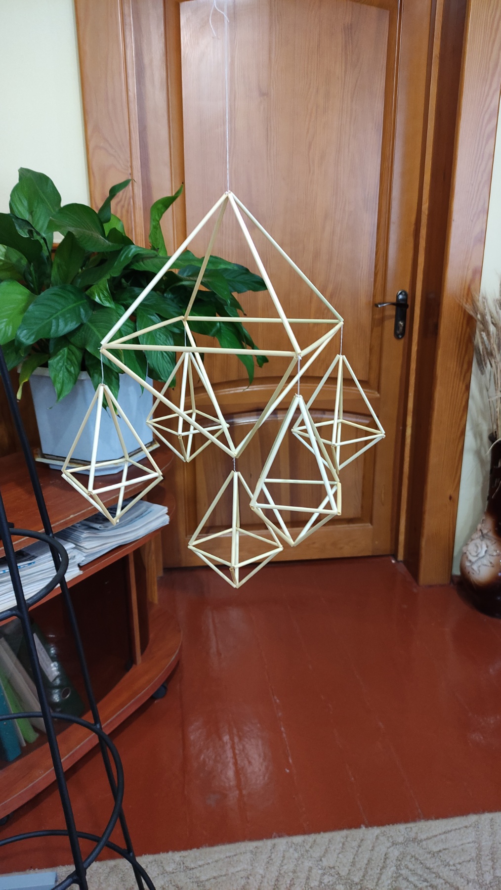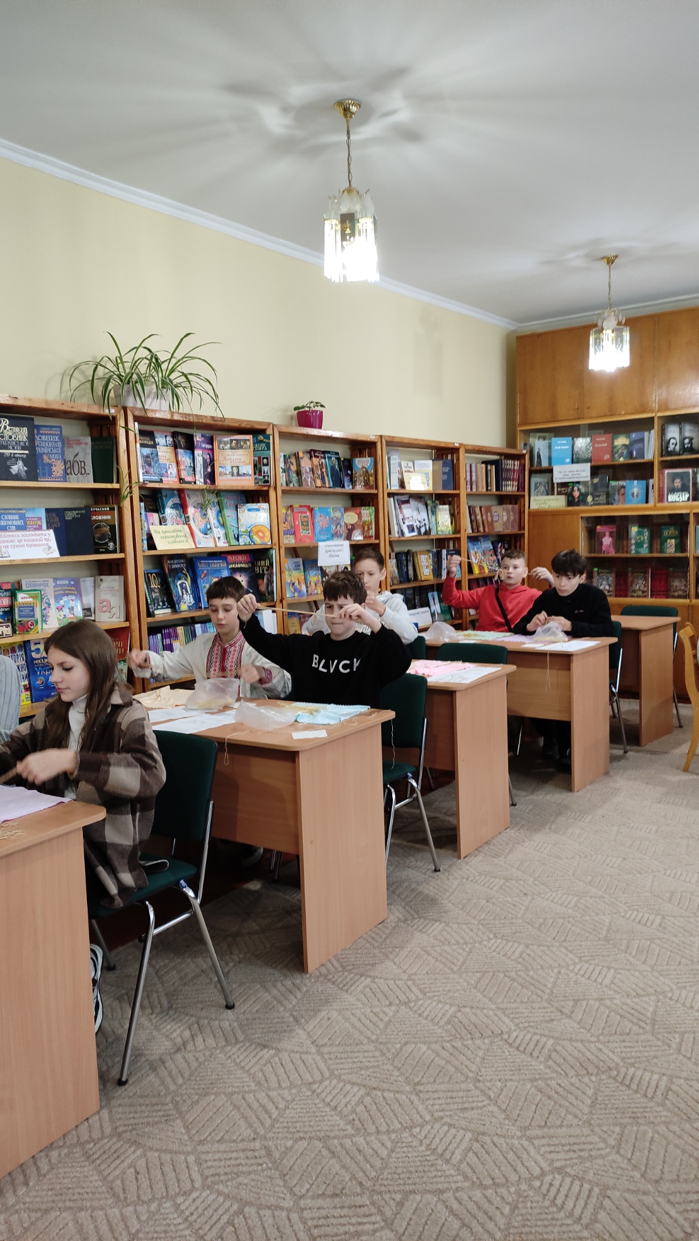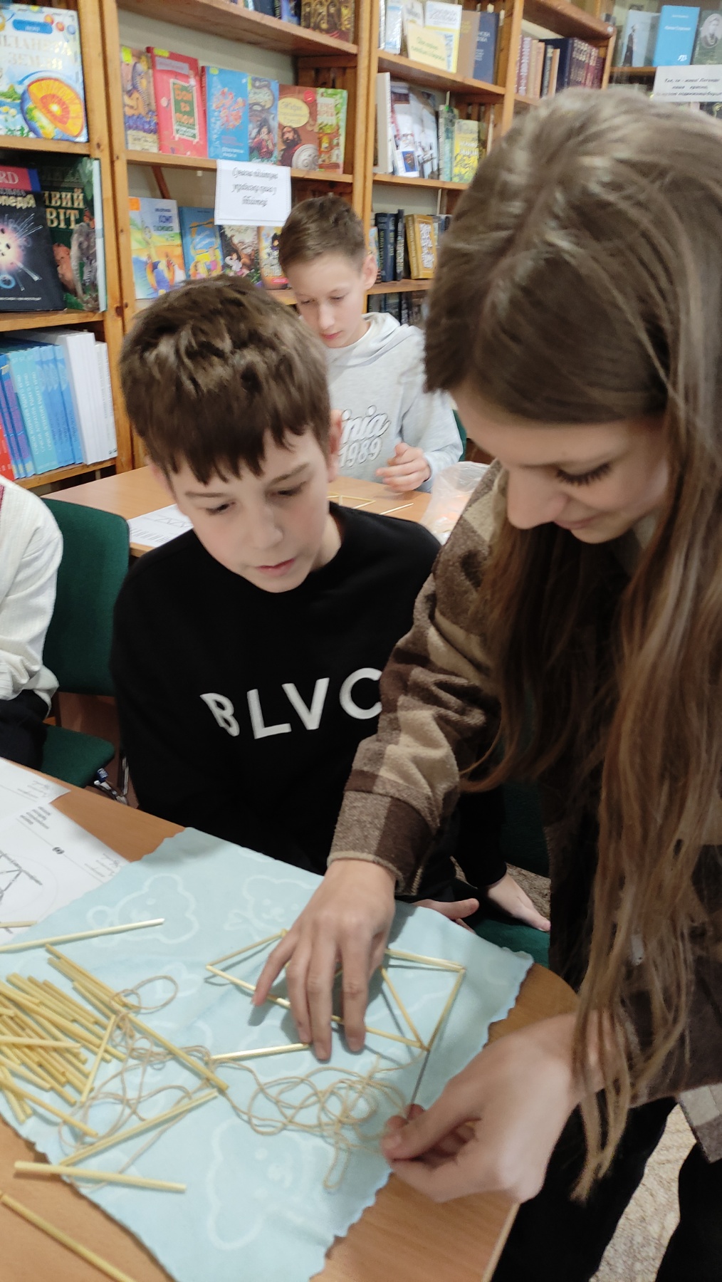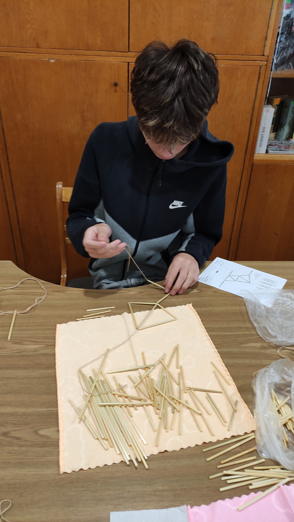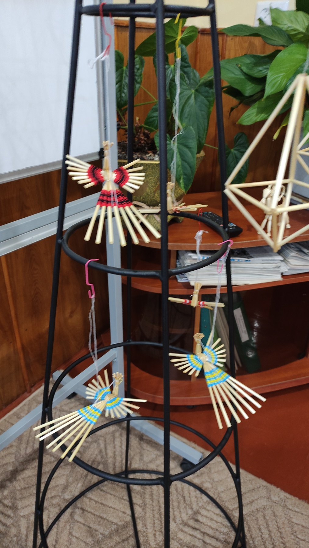 На практичній частині восьмикласники отримали все необхідне: підготовлену солому, міцні нитки, а головне – чіткі схеми для складання об'ємної фігури. Діти вчилися мистецтву з'єднання тонких соломинок у складні пірамідальні модулі, які згодом збираються в єдину, рухливу конструкцію. Це заняття вимагало неабиякої уваги, терпіння та математичної точності! Хоча учні продемонстрували високий рівень зацікавленості та наполегливості, через складність техніки й обмежений час повністю завершити свої роботи не вдалося. Проте пані Якимович подбала й про це! Кожен учасник отримав набори матеріалів, інструкції та схеми, щоб продовжити роботу вдома. Це чудовий привід для ліцеїстів не лише освоїти ремесло, а й залучити до творчості батьків чи молодших членів родини, створивши свій власний, зроблений з любов'ю різдвяний оберіг.