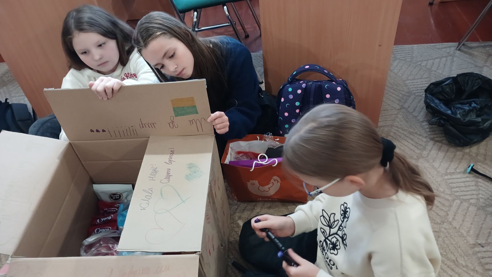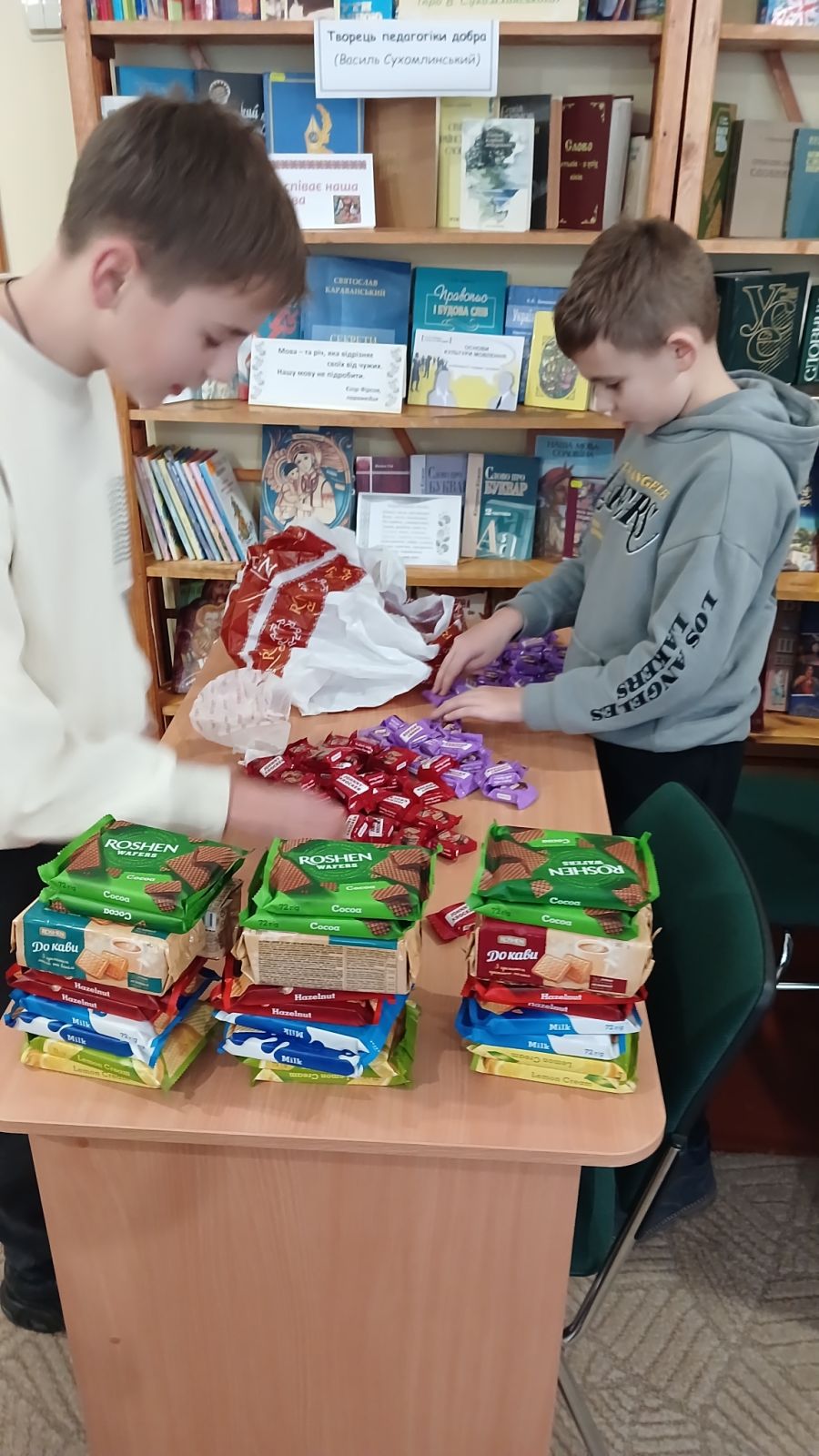 Спочатку в скриньку зібрали донати учнів та їхніх сімей. На ці кошти мами закупили солодощі та інші смаколики. П’ятикласники малювали патріотичні малюнки, щоб подарувати добро своїх сердець, любов та подякувати воїнам-захисникам за те, що вони боронять нашу незалежність. Ліцеїсти зібралися разом, щоб наповнити посилки цукерками, печивом, сухофруктами та іншою смакотою. У кожну ще поклали свої малюнки з теплими словами побажань.