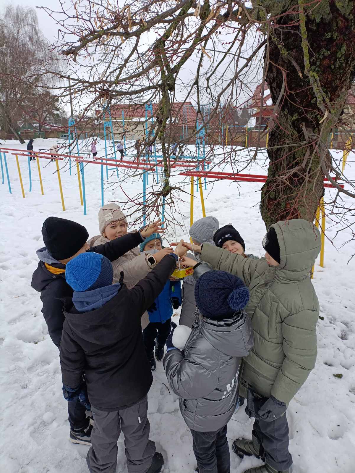 Третьокласники працювали у творчій студії «Моя улюблена зимуюча пташка». Під час проведення акції «Подарунок для пташки» молодші школярі проявили велику фантазію у виготовленні годівничок і виборі смачних подарунків для пташок, у вигляді корму. Найбільш активними у розвішуванні годівничок та наповнюванні кормом пташиних їдалень були учні 1-В, 1-Г, 2-А, 2-Б, 2-В, 2-Г, 3-А, 3-В класів.