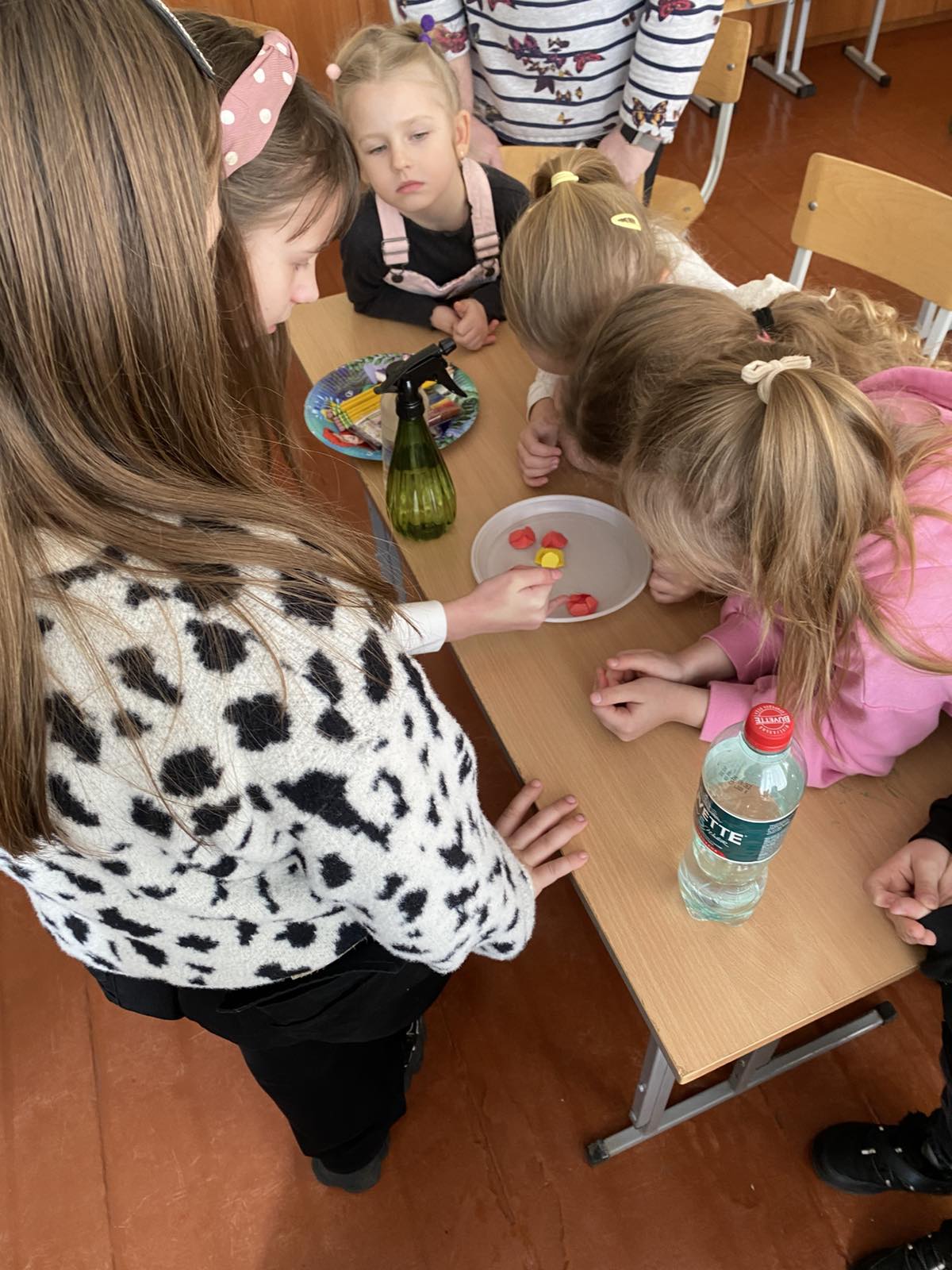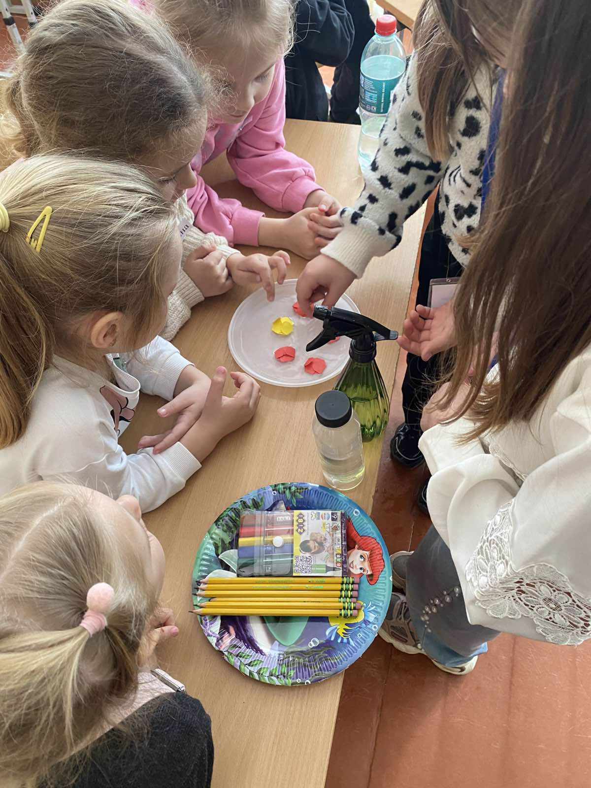 Ліцеїсти запросили вихованців садочку в лабораторію, де досліджували властивості води, впізнавали різні стани води, виконуючи завдання в ПЗ «Розумники». Діти спостерігали, як оживає «гусінь» та розпускаються паперові квіти під дією чарівниці-води. Кожен вихованець отримав завдання – спостерігати, як змінюється кулька з льоду протягом дня, і дізнатись, що сховано всередині кожної.