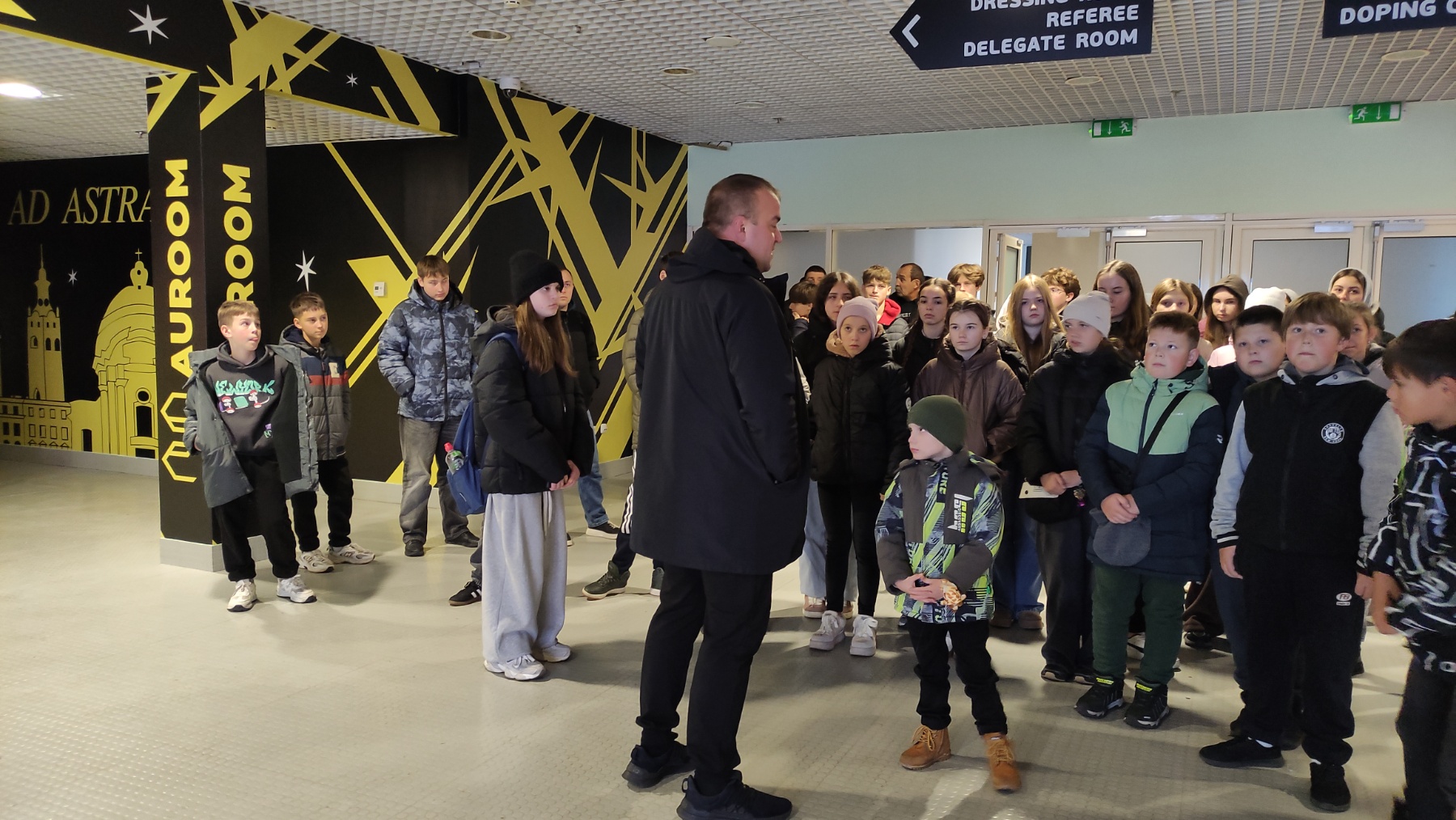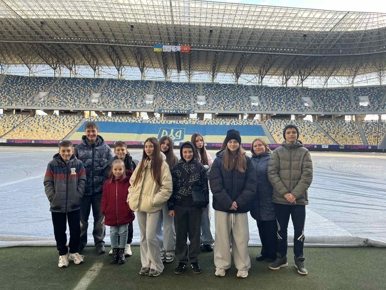 Першою локацією став сучасний стадіон «Арена-Львів». Ліцеїсти змогли поринути у світ великого футболу, відвідавши місця, зазвичай недоступні для вболівальників: роздягальню команд, конференцзал, президентську та VIP-зони.