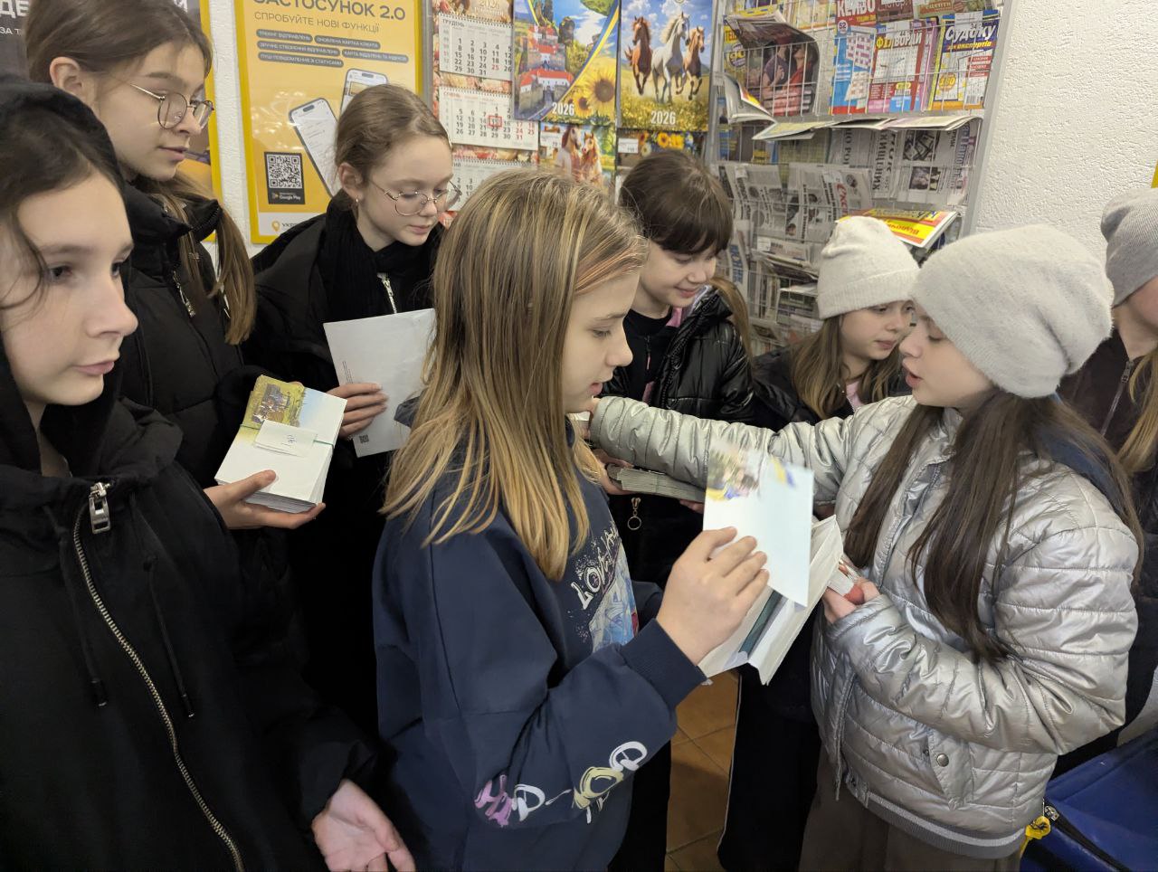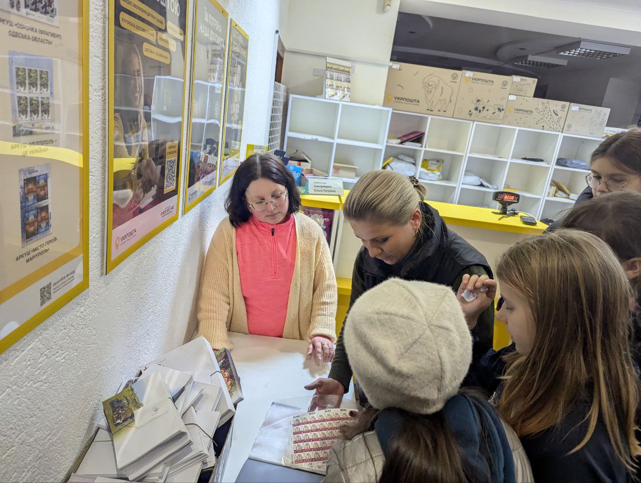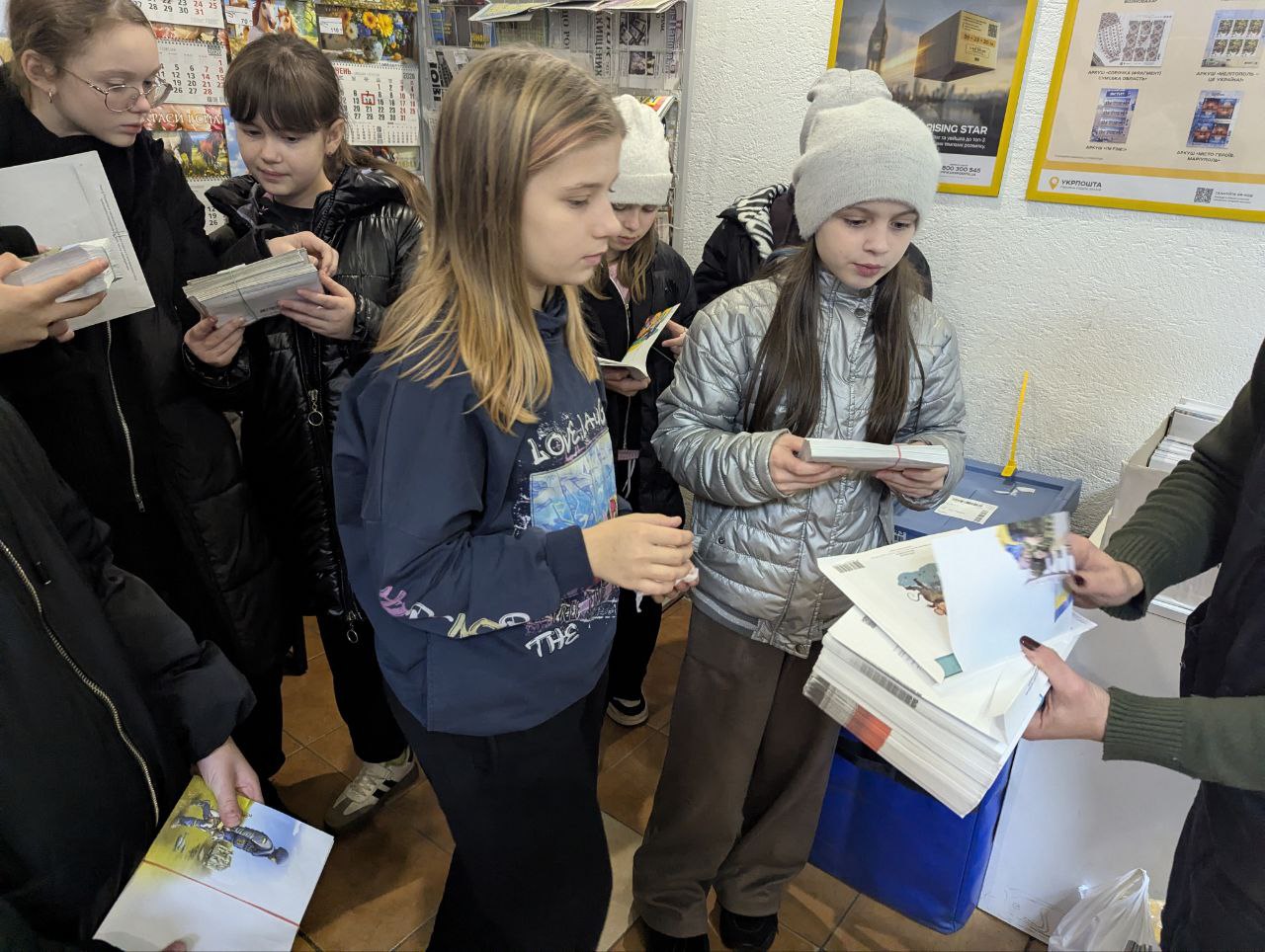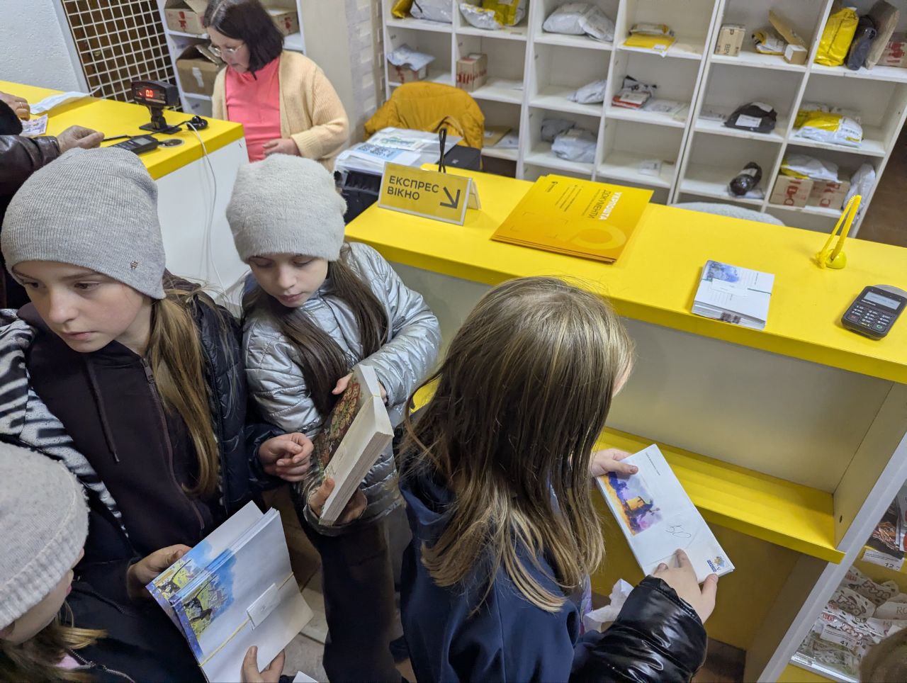 Заступник начальника відділення Ольга Петрівна Комарицька та оператор Оксана Вікторівна Нікітіна доступно та цікаво розповіли про основну діяльність, послуги, мережу, про роботу після повномасштабного вторгнення. Працівники відділення продемонстрували роботу з комп'ютером, комунікацію з відвідувачами, показали процес кодування листів та різних відправлень, звертаючи увагу дітей на знання та навички, необхідні для виконання тієї чи іншої роботи. Дівчатка мали можливість роздивитись різні марки, конверти, бокси для транспортування посилок. На завершення зустрічі дівчатка подарували ангелики, зроблені власноруч на уроках технологій, а працівники відділення пригостили їх цукерками та подарували магнітики - марки.