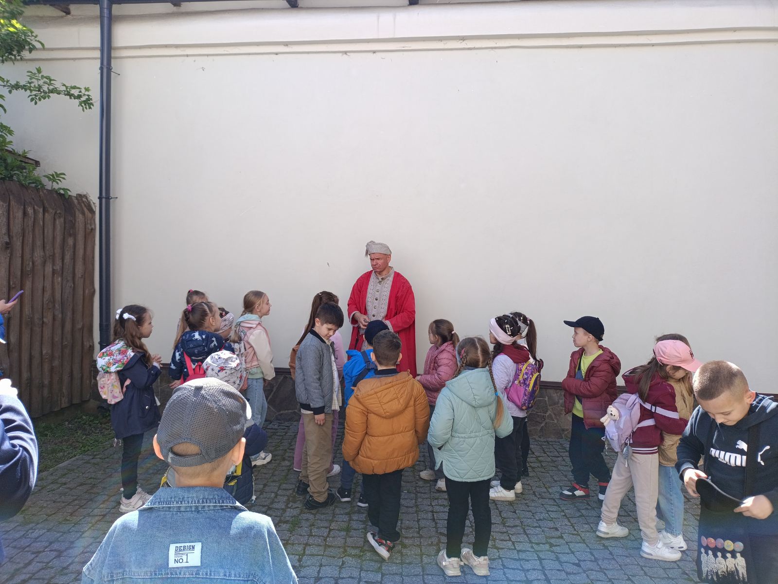 2 травня учні 1-Б відвідали музейний простір "Окольний замок". Зустрів дітей екскурсовод в образі міського війта Андрія Загоровського. Цікавими історіями він відразу захопив увагу малих мандрівників. Першокласники мали відшукати в замку 12 ключів, щоб потім у нагороду отримати "сльози дракона". Діти побачили відреставровану вежу князів Чорторийських, побували в приміщеннях, де розміщена галерея рицарства, експозиція навчального процесу в Єзуїтському колегіумі.