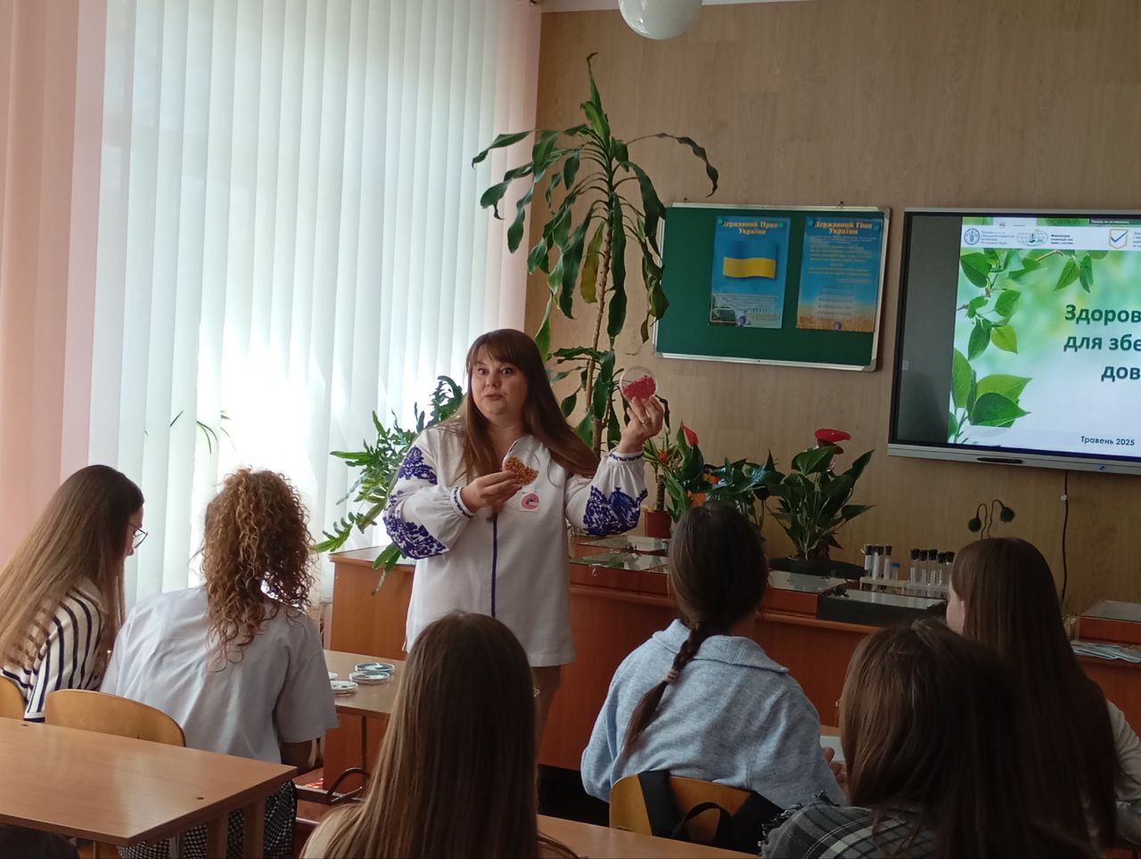 8 травня 2025 року на зустріч до учнів 10-Б та 10-В класів, щоб провести незвичний урок біології, завітали фахівці ДУ «Волинська фітосанітарна випробувальна лабораторія Держпродспоживслужби». Спікери Ірина Хоменко та Наталія Нечипорук ознайомили учнів з інформацію щодо тематичного дня – здоров’я рослин, що припадає на 12 травня. У розмові з ліцеїстами гості порушили питання значення рослин у житті людини, ознайомили з хворобами та шкідниками рослин, небезпечними карантинними бур’янами. Особливий інтерес викликала інформація про шкідливі організми, які виявлялися в лабораторії. Ірина Хоменко та Наталія Нечипорук розповіли ліцеїстам про свою діяльність, висвітлили думку про біопрепарати та важливість їх застосування задля збереження флори та фауни. Продемонстрували колекційний матеріал та пророщене насіння культурних рослин.