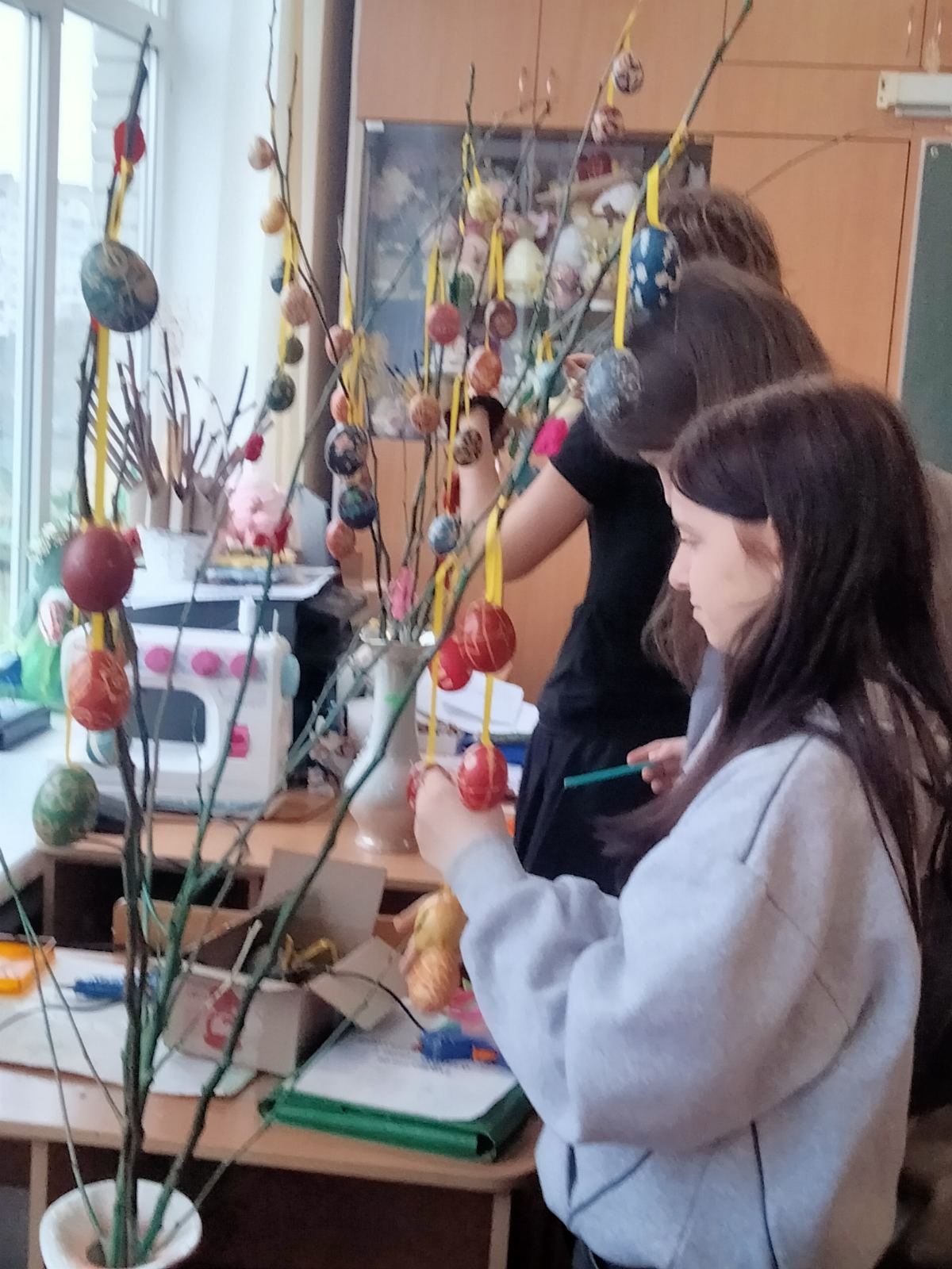 До свята Великодня на уроках технології і трудового навчання проведено майстер-класи, під час яких виготовляли писанки, мальованки, сувеніри та дизайнерські вироби для прикрашення інтер'єру.