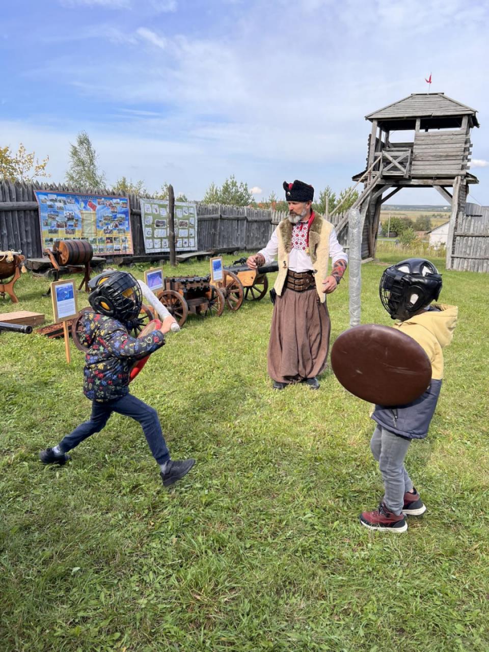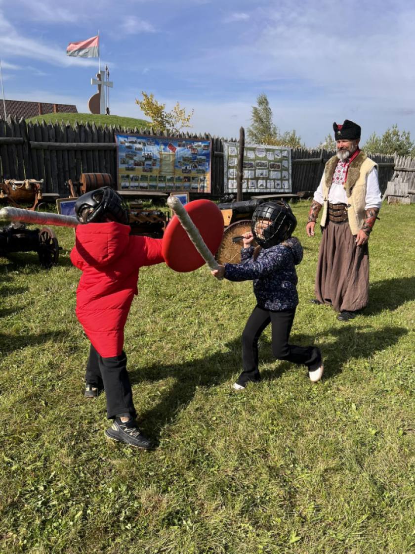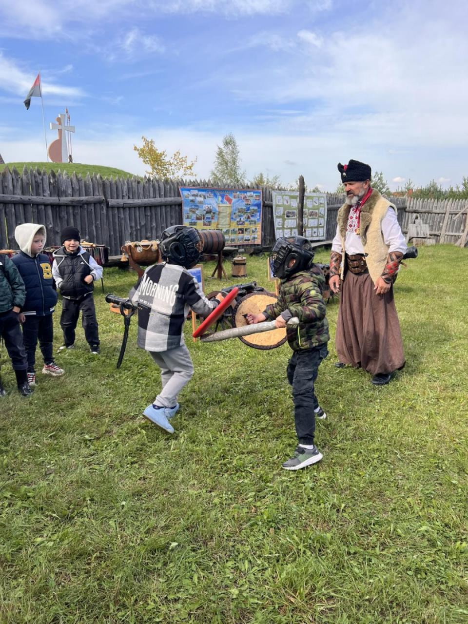 Екскурсію проводили справжні козаки, які розповіли про історію створення музею, звичаї, побут і бойові звитяги козаків. Діти ознайомилися з різними видами зброї, «билися на шаблях», стріляли з лука, співали козацьких пісень у супроводі литавр.