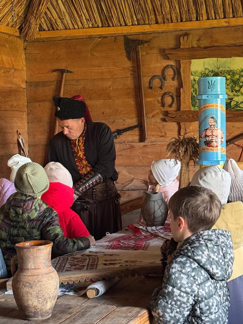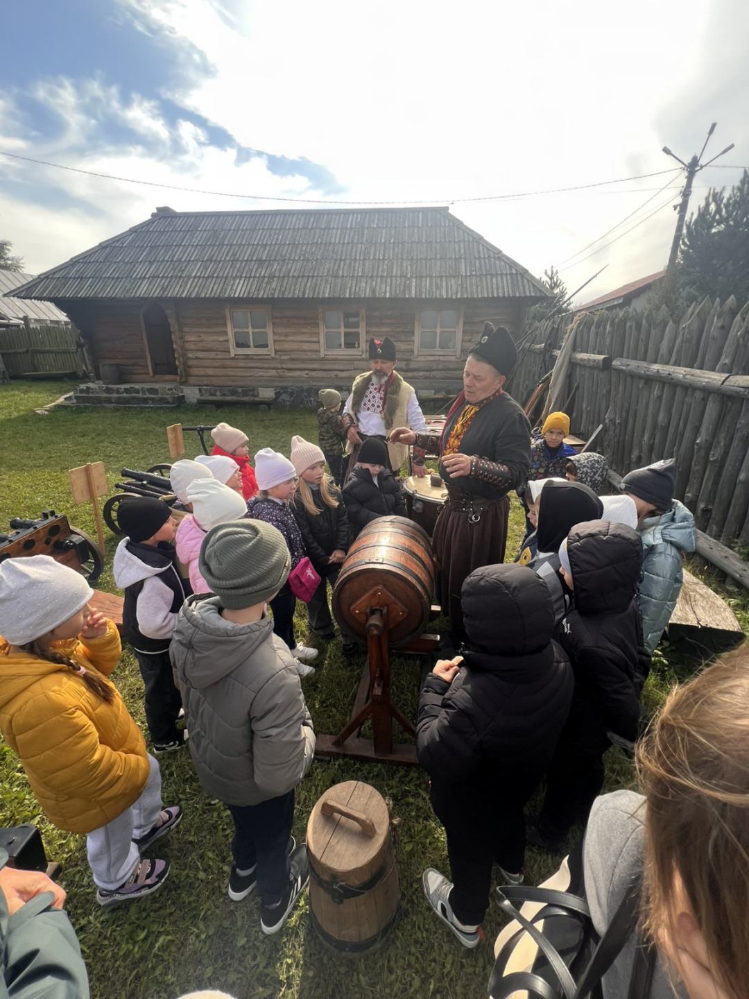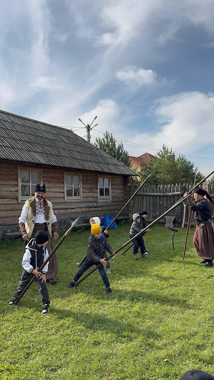 Екскурсію проводили справжні козаки, які розповіли про історію створення музею, звичаї, побут і бойові звитяги козаків. Діти ознайомилися з різними видами зброї, «билися на шаблях», стріляли з лука, співали козацьких пісень у супроводі литавр.