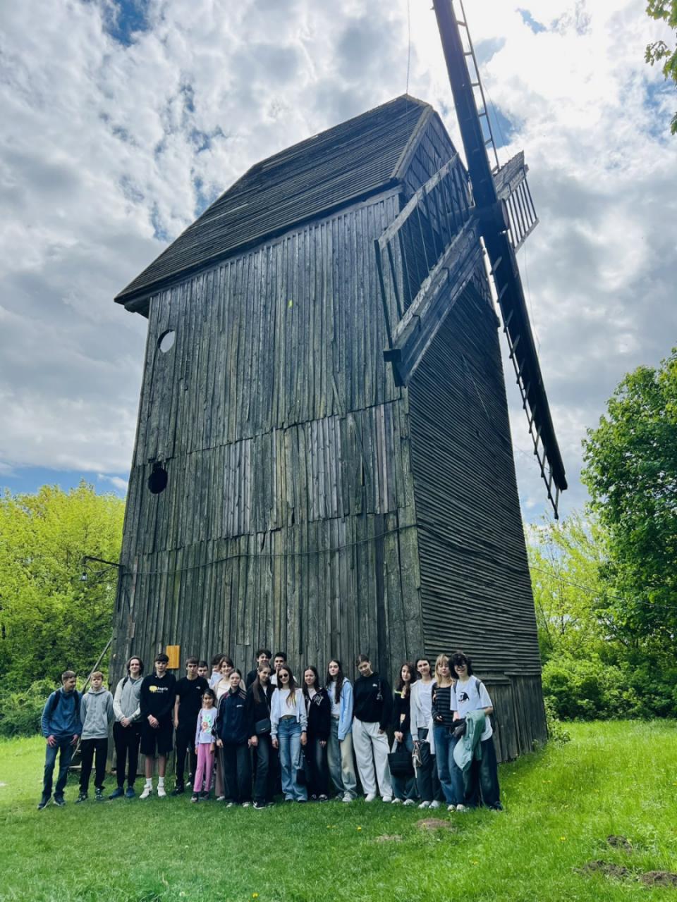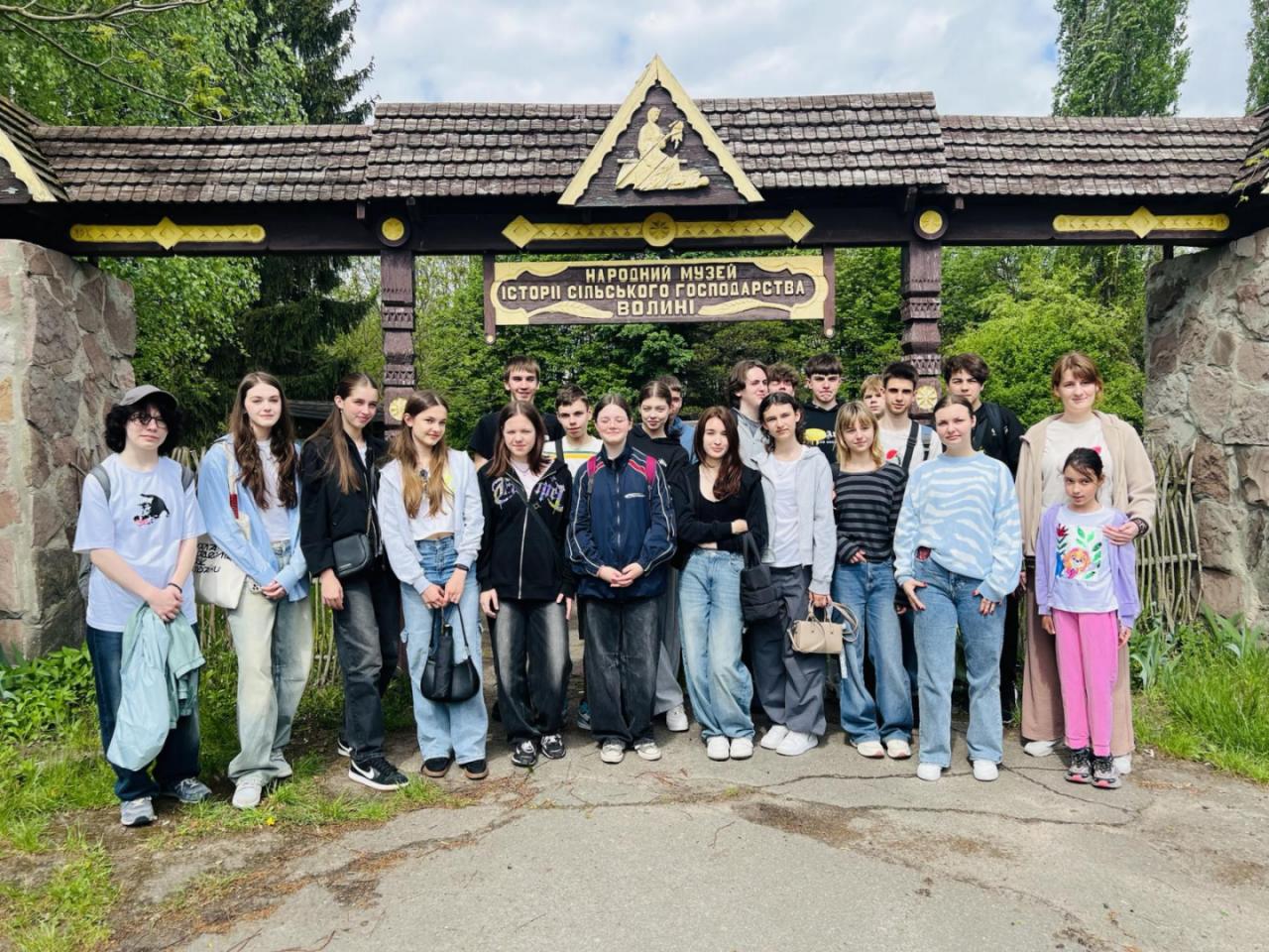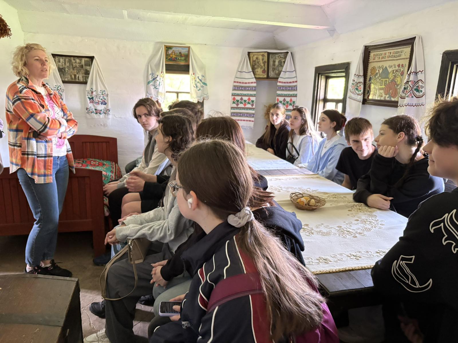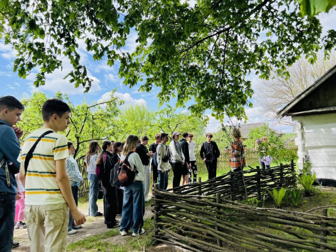 Ліцеїсти та батьки мали можливість познайомитися з пам’ятками древнього житлового, господарського, дерев’яного будівництва, а також поринути в цікаву подорож стежками мальовничого парку, помилуватись голубим плесом ставка. Серед експонатів скансену є старовинні знаряддя праці, будівлі житлового, побутового й господарського характеру: млин, хлів, клуня, льох, дводільна хата, курна хата, стодола тощо.