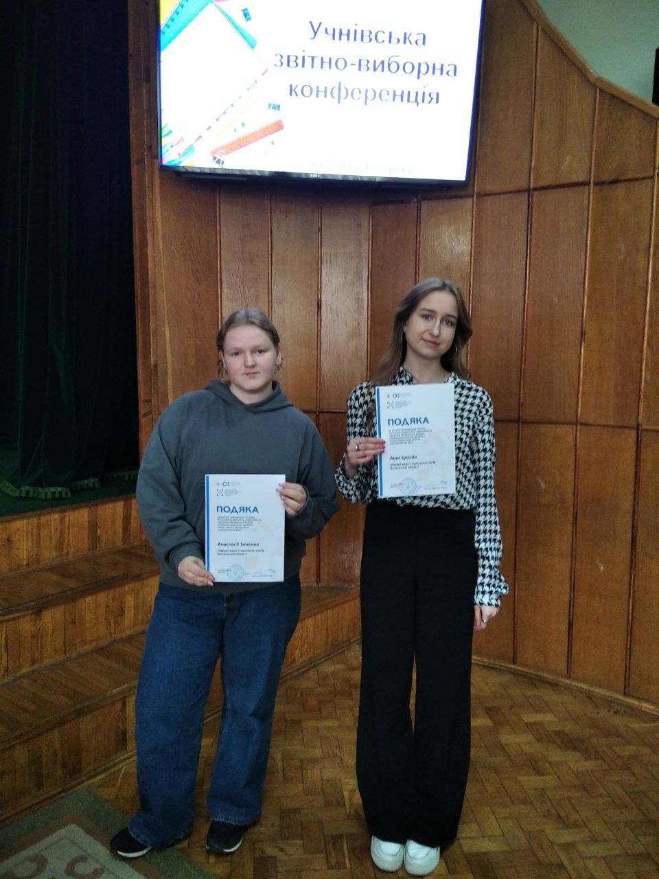 Анна Цеслів та Анастасія Івченко отримали подяки Українського державного центру позашкільної освіти за активну громадянську позицію, волонтерську діяльність, спрямовану на підтримку Збройних сил України, реалізацію соціальних проєктів з питань захисту прав дітей на всеукраїнському рівні.