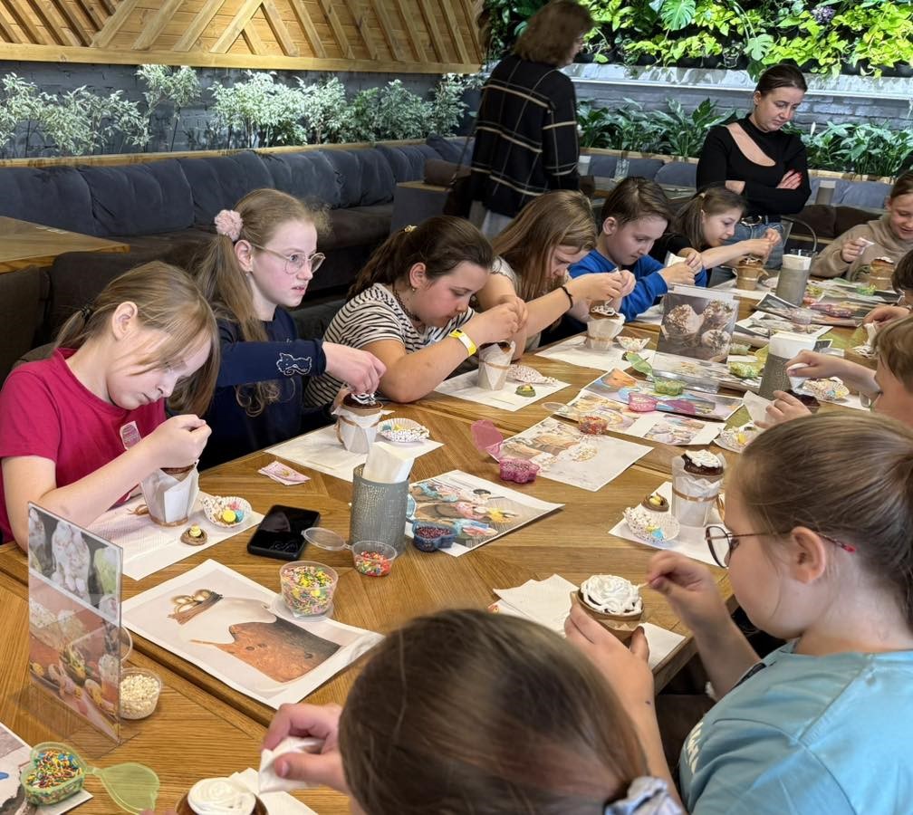 Напередодні Великодніх свят учні 4-Б класу побували в кафе «Моджо», де був проведений квест «Таємниці Великоднього яйця». Разом з ведучими-Кроликами діти розкривали звичаї та обряди відзначення цього свята в різних країнах, розшифровували криптограми, складали пазли в парах, грали в ігри. Емоційним був майстер-клас "Оздоблення пасочки".