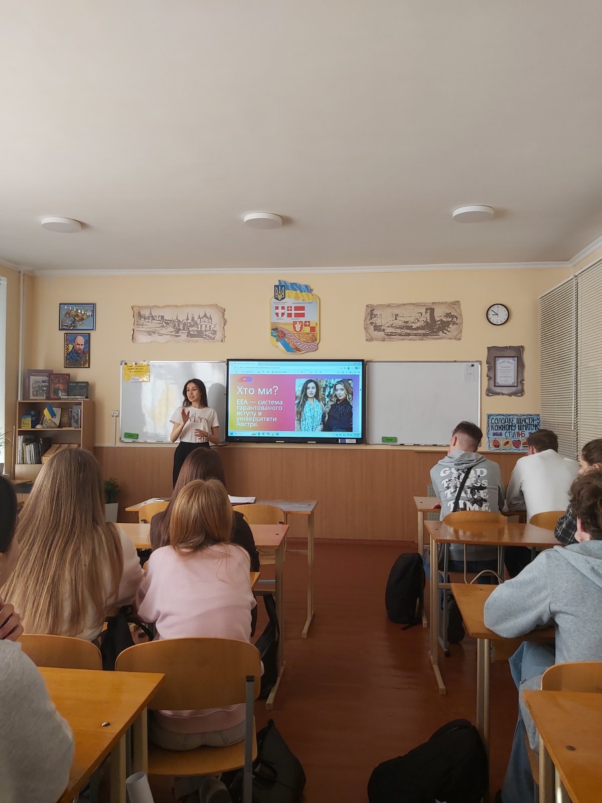 11 березня в ліцеї відбулася цікава та змістовна профорієнтаційна зустріч учнів старших класів із представницею European Education Academy Семеновою Марією. Захід був спрямований на допомогу молоді у виборі майбутньої професії, розширення уявлень про сучасний ринок праці та можливості подальшого навчання.