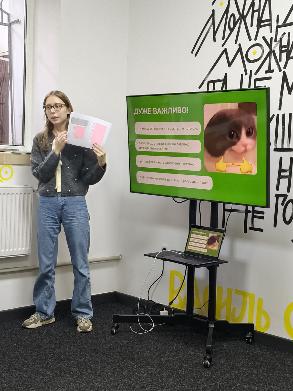 Особливе враження залишила вправа «5 життів», що спонукала уявити себе в різних професійних ролях і зрозуміти, що насправді приносить задоволення й мотивацію до розвитку.