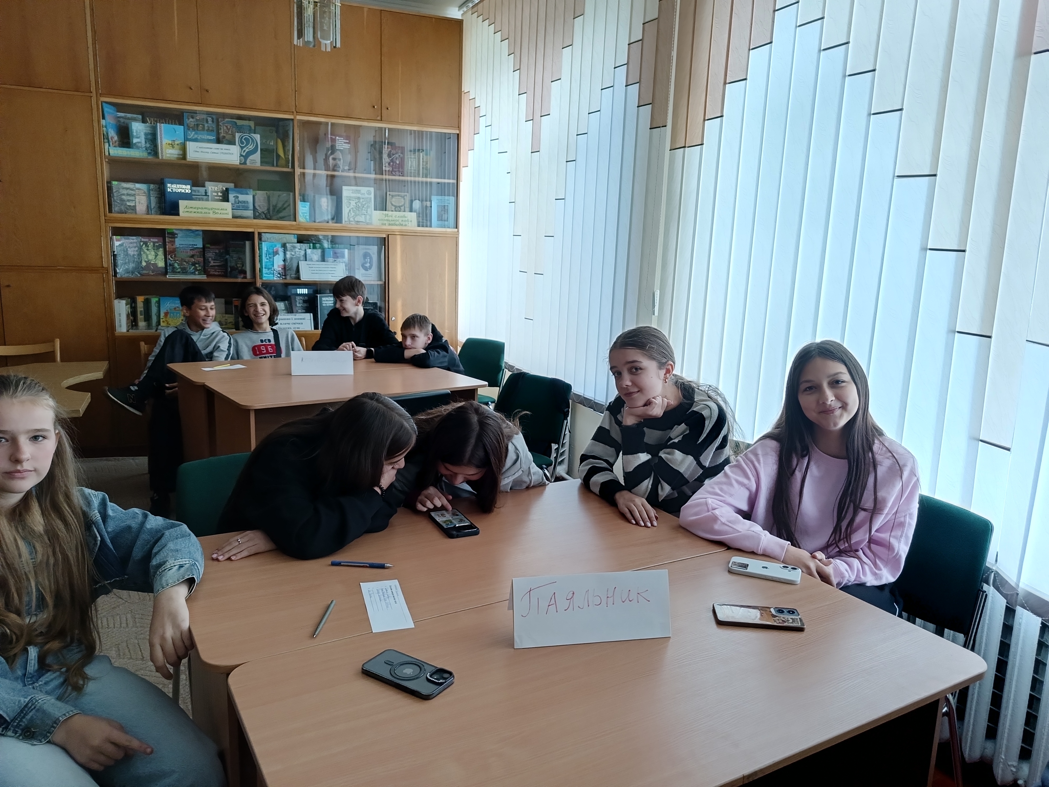 У читальному залі бібліотеки ліцею відбулася інтелектуальна гра «Мову знай та вигравай» з 7-В класом (класний керівник Потурай І.П.), під час якої учні перевіряли свої знання з української мови в цікавій ігровій формі. Діти розв’язували мовні загадки, добирали синоніми, фразеологізми. Пояснювали значення слів і змагалися у швидкості мислення та кмітливості. Гра проходила жваво, у дружній атмосфері, сповненій сміху й азарту.