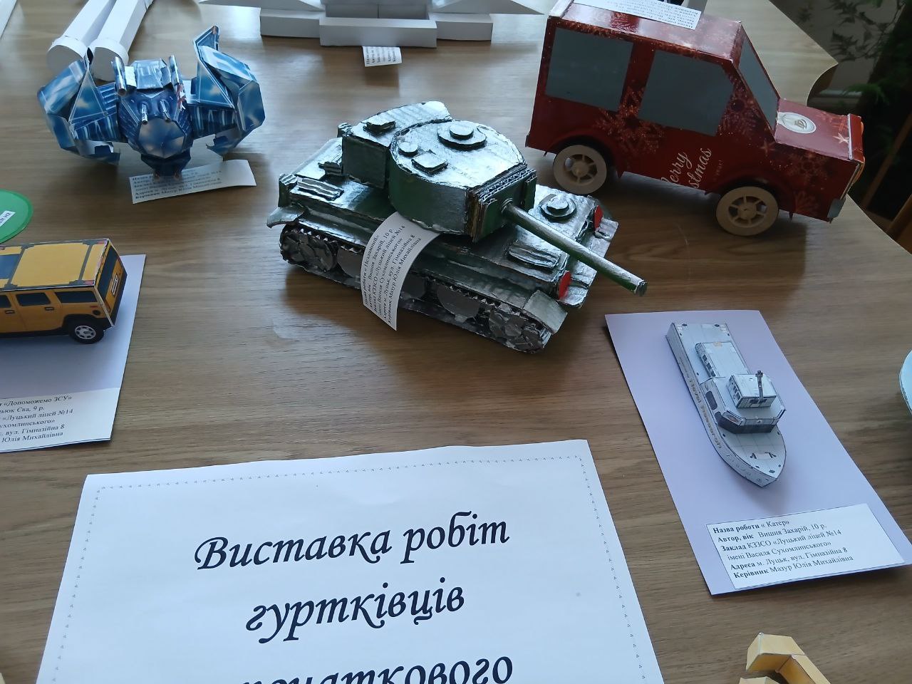 А ще більше робіт гуртківців можна було побачити на виставці - справжній демонстрації таланту та вміння перетворювати плоский папір та непридатні матеріали на функціональні та естетичні моделі.
