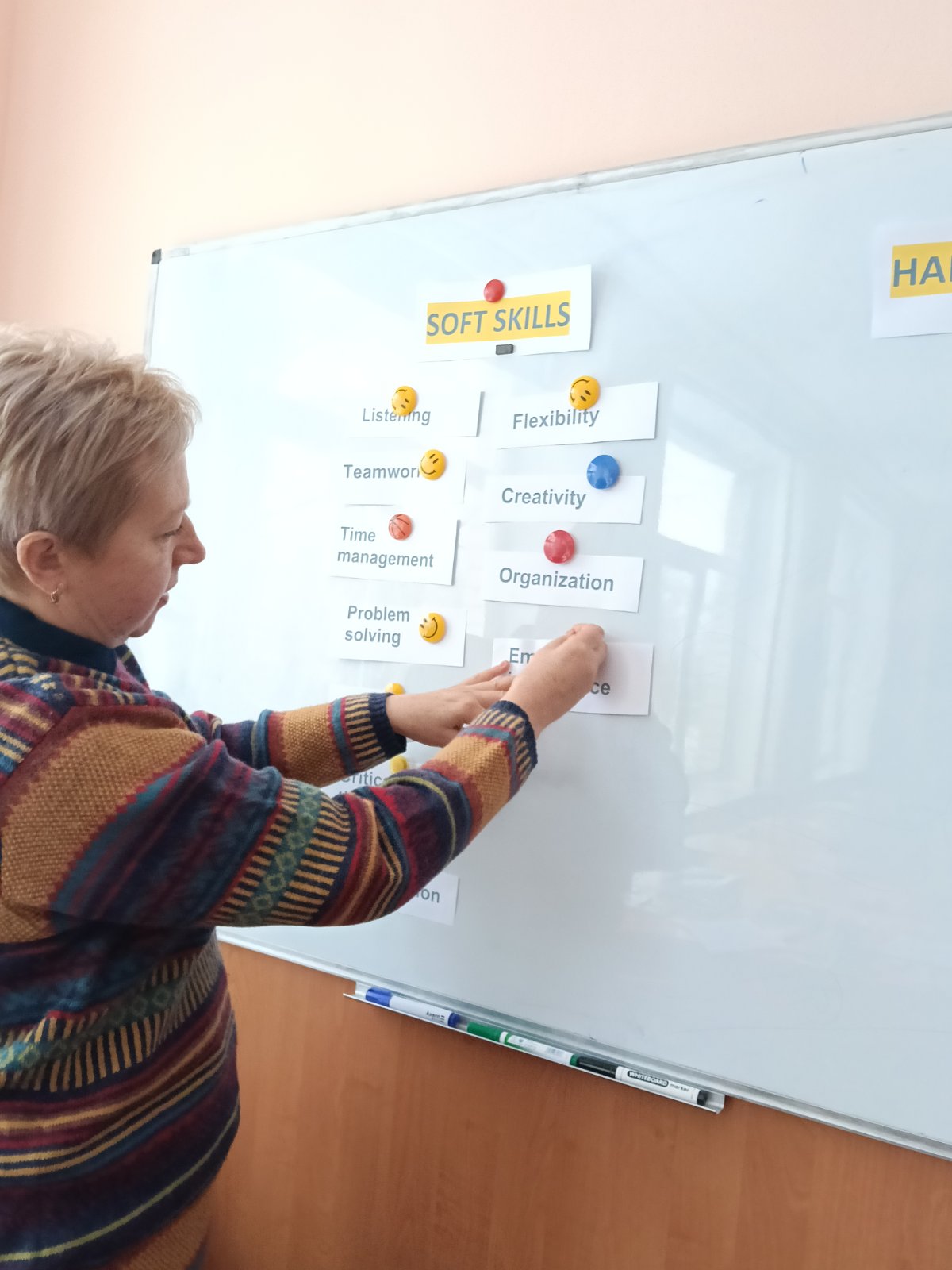 Під час занять педагоги обговорили значення soft skills у сучасній освіті, зокрема розвитку комунікації, критичного мислення, емоційного інтелекту, уміння працювати в команді та відповідальності за власне навчання. Учасники поділилися практичними напрацюваннями щодо інтеграції цих навичок в освітній процес на уроках та в позаурочній діяльності.