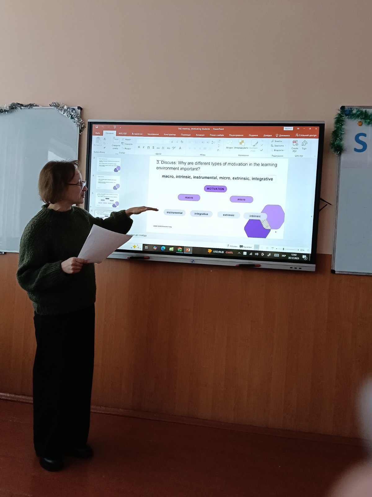 Окрему увагу було приділено питанням мотивації учнів до навчання. Учителі аналізували ефективні мотиваційні підходи, обговорювали роль підтримувального освітнього середовища, позитивної комунікації та індивідуального підходу до кожного учня. Практична частина засідання включала обмін прикладами успішних методик, які допомагають підвищити зацікавленість учнів і сприяють усвідомленому навчанню.