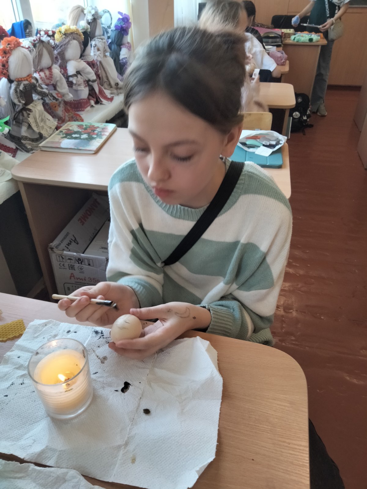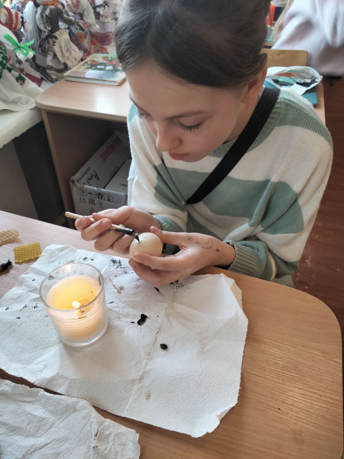 Надзвичайно цікаво ліцеїстам було попрацювати на майстерках з виготовлення великодніх сувенірів, які провели для них вчителі технологій Лагода Т.А., Горбатюк Н.А. Так, учні 9-Г класу виготовляли текстильних зайців, які потім передали на благодійну великодню ярмарку. Учні 6-В, 6-Г класів писали писанки, мальованки та виготовляли сувенірні декоративні писанки з картону та текстильних матеріалів. Їхні роботи демонструвалися на ліцейній виставці.