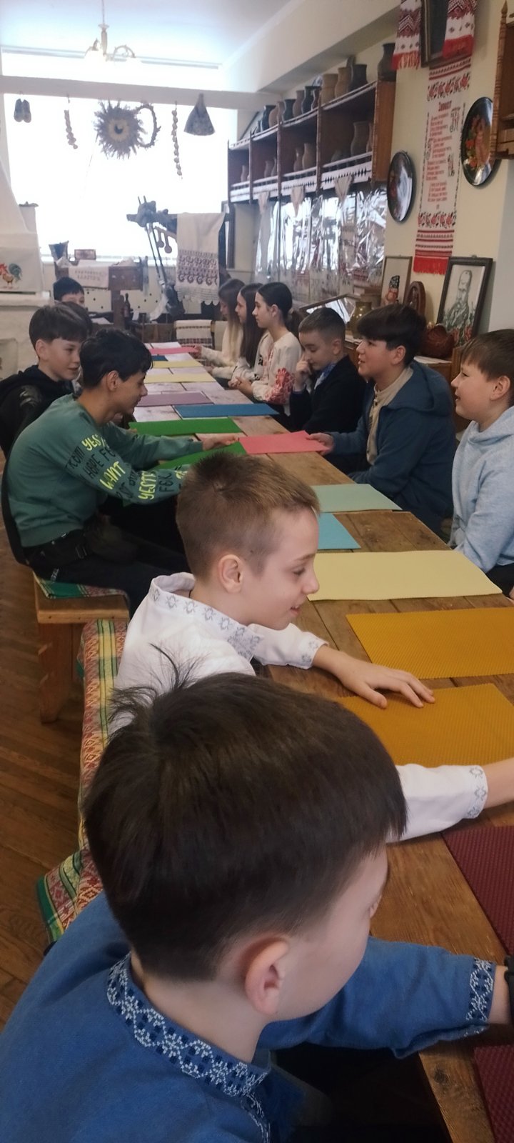У четвер, 29 січня, для учнів 6-А класу відбувся особливий захід – творчий майстер-клас з виготовлення стрітенських свічок. У зразковому народному етнографічному музеї «Світлиця» учні мали змогу оглянути експонати, почути розповідь про створення нашого музею та особливо відчути атмосферу українського побуту, дізналися більше про саме свято Стрітення Господнє та про значення стрітенської свічки, яка є символом Божого світла та захисту.