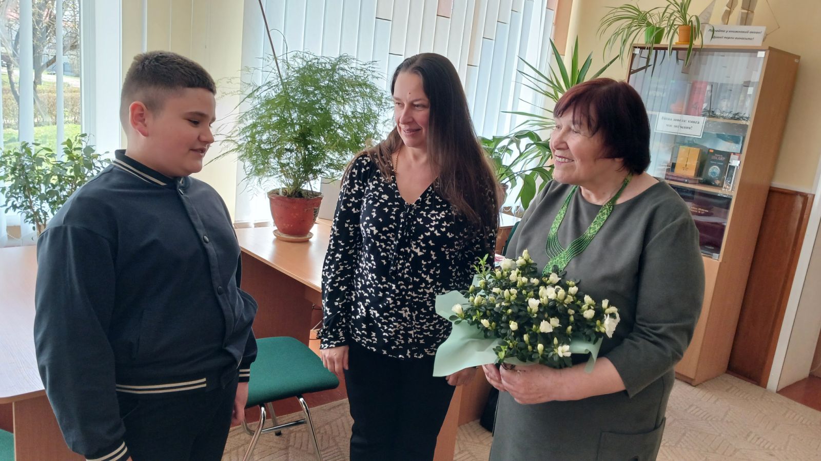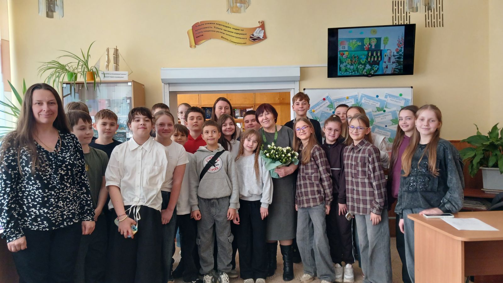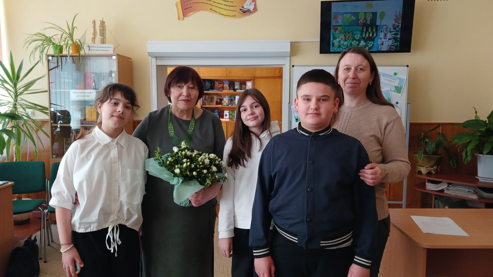 По-справжньому родинною була зустріч учнів 5-А класу із поетесою, Заслуженим учителем України Ніною Петрівною Горик. Її онучка Анна Литвинюк розповіла однокласникам цікаві факти про свою бабусю: про те, що в 4 роки вона перейшла державний кордон, що прочитала більше 1000 книг і має велику домашню бібліотеку. Цікаво було дізнатися, що Ніна Петрівна складала казочки для Ані, коли та ще була маленькою, а улюбленим героєм онучки став щур на ім'я Хропак.