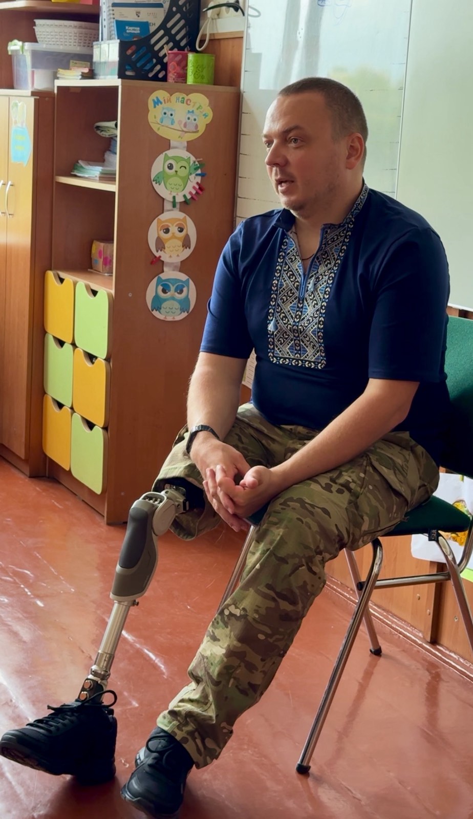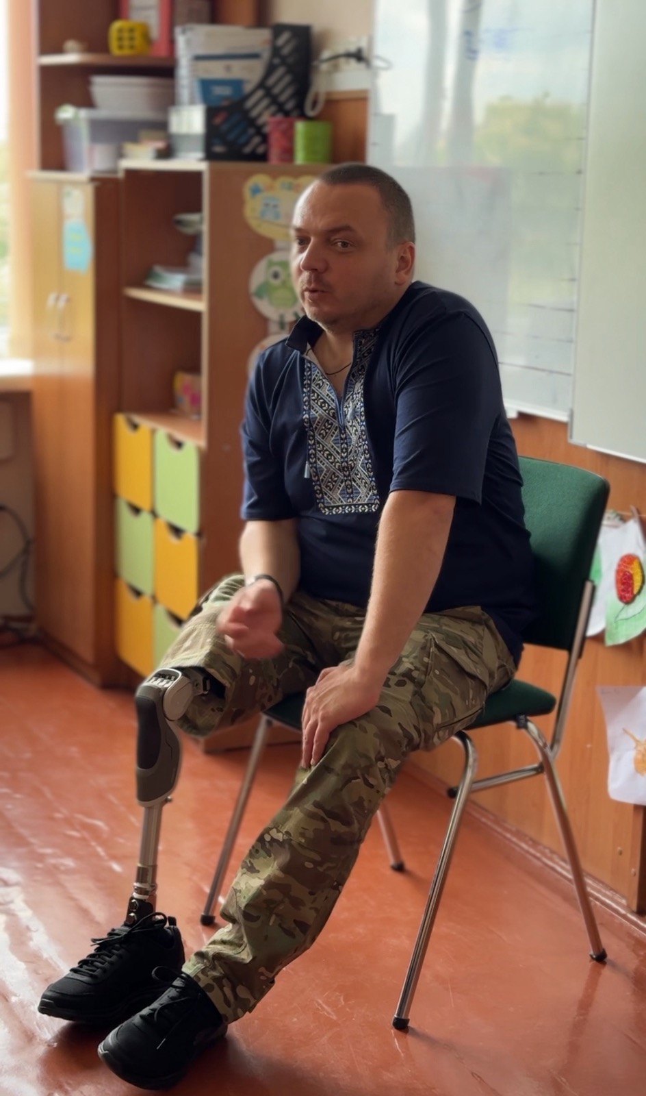 Євген Сивопляс, боєць-штурмовик, який отримав травматичну ампутацію правої ноги під час боїв в Авдіївці, поділився своєю історією боротьби та адаптації до нового життя. Його відкритість і щирість допомогли дітям краще зрозуміти, що означає бути військовим, які виклики постають перед пораненими бійцями та як суспільство може підтримати їх.