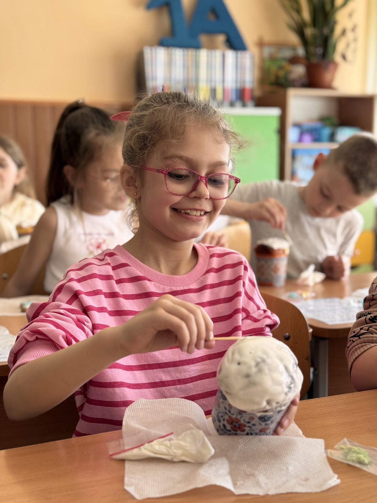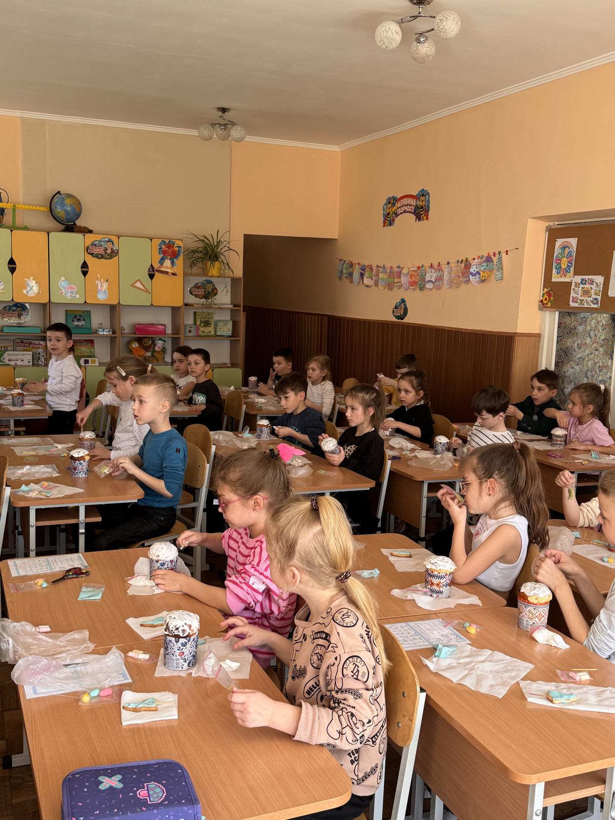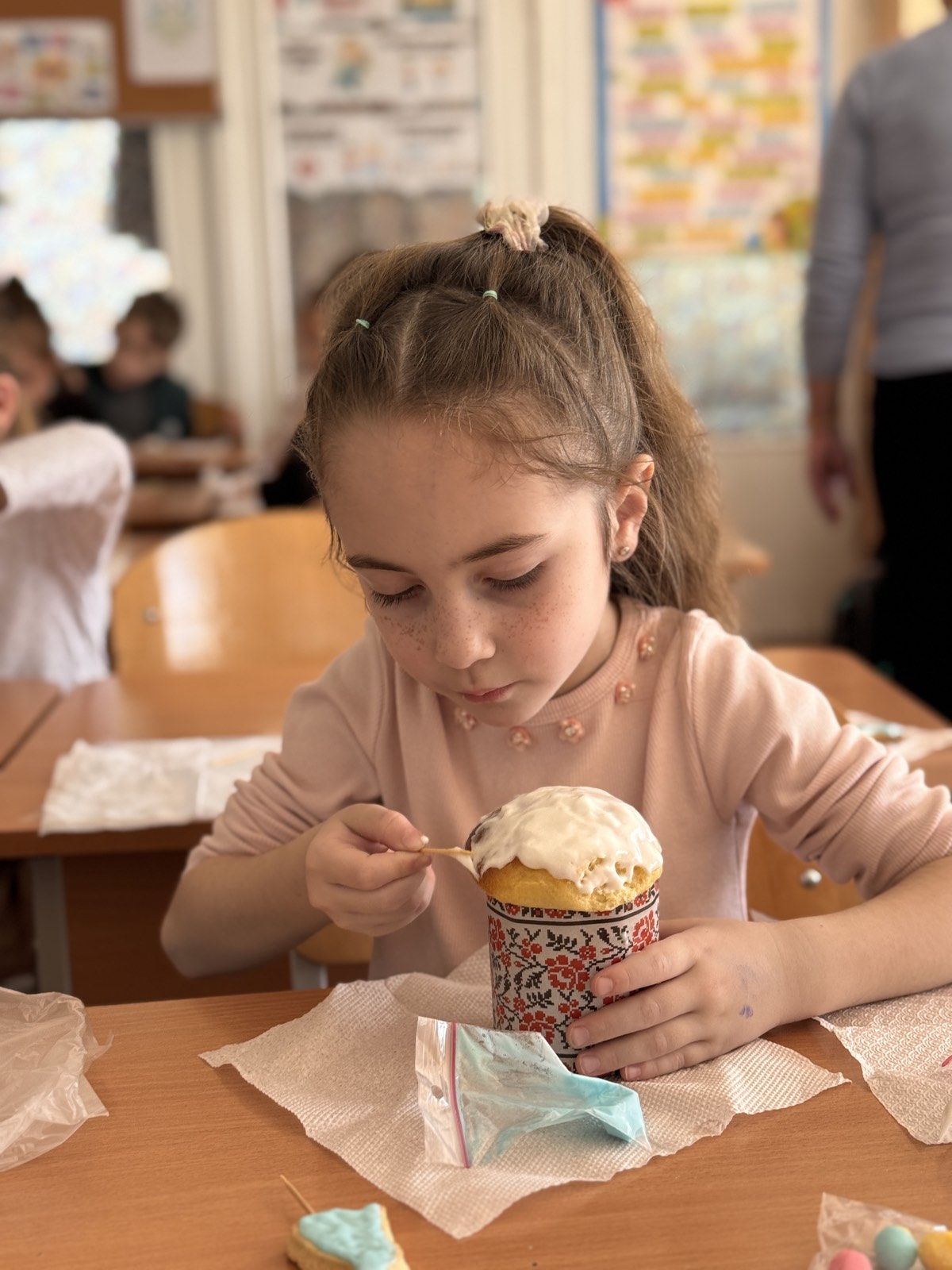 Кажуть, що випікати паски важко. А ви спробуйте лише їх оздобити! Учні 1-А класу напередодні Великодня мали можливість навчитися це робити. Ох і не проста справа! Рівномірно нанести глазур, втриматися, аби не з’їсти її, виліпити крашанки з маршмелоу, декорувати пасхального зайчика. Важко, але надзвичайно захопливо!