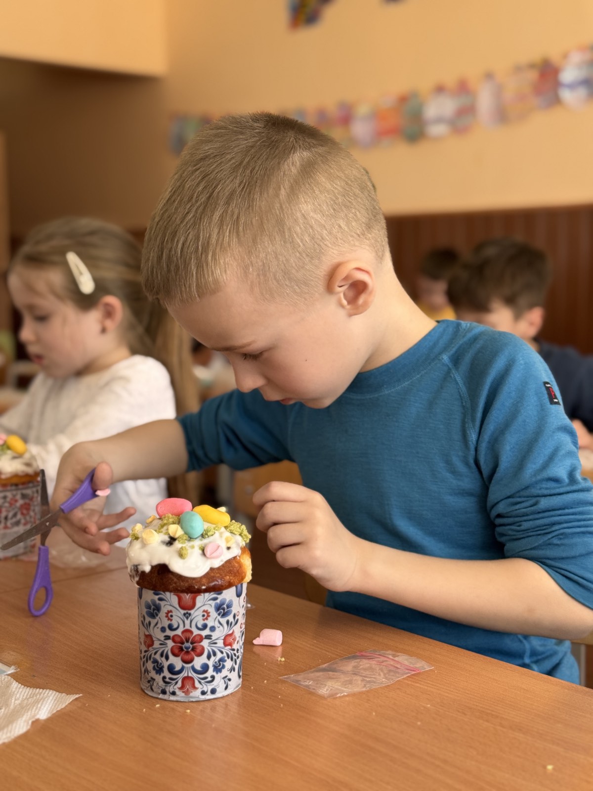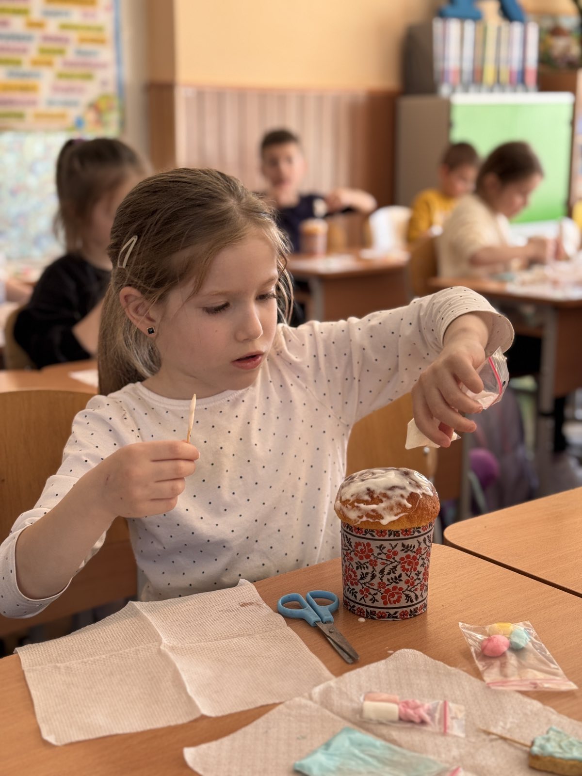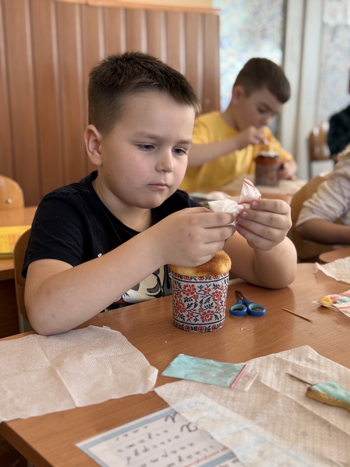 Кажуть, що випікати паски важко. А ви спробуйте лише їх оздобити! Учні 1-А класу напередодні Великодня мали можливість навчитися це робити. Ох і не проста справа! Рівномірно нанести глазур, втриматися, аби не з’їсти її, виліпити крашанки з маршмелоу, декорувати пасхального зайчика. Важко, але надзвичайно захопливо!