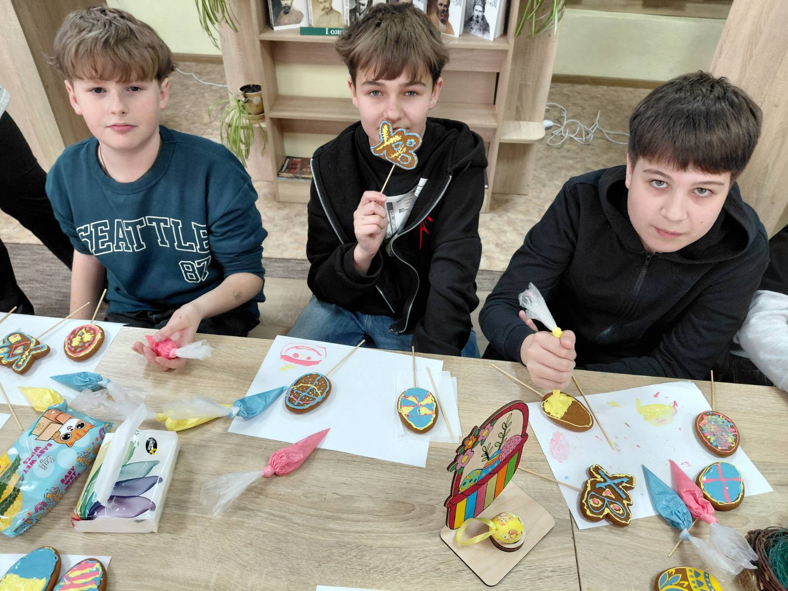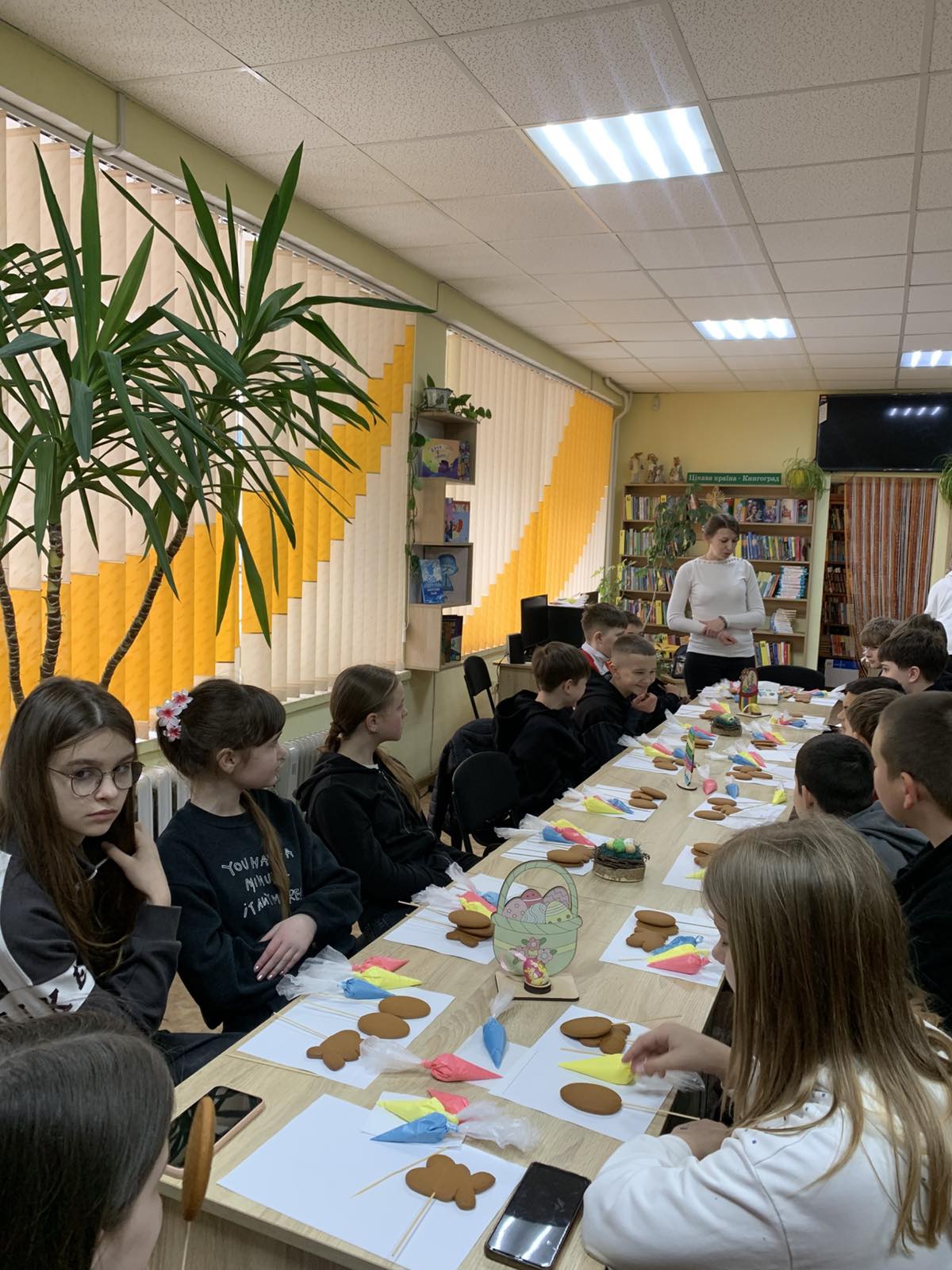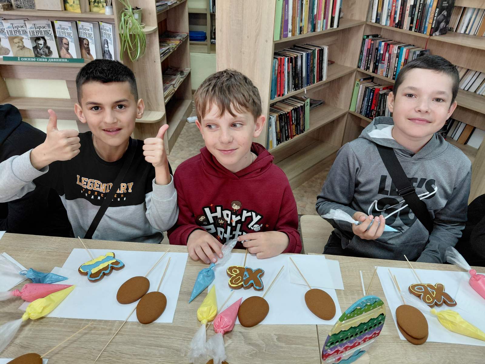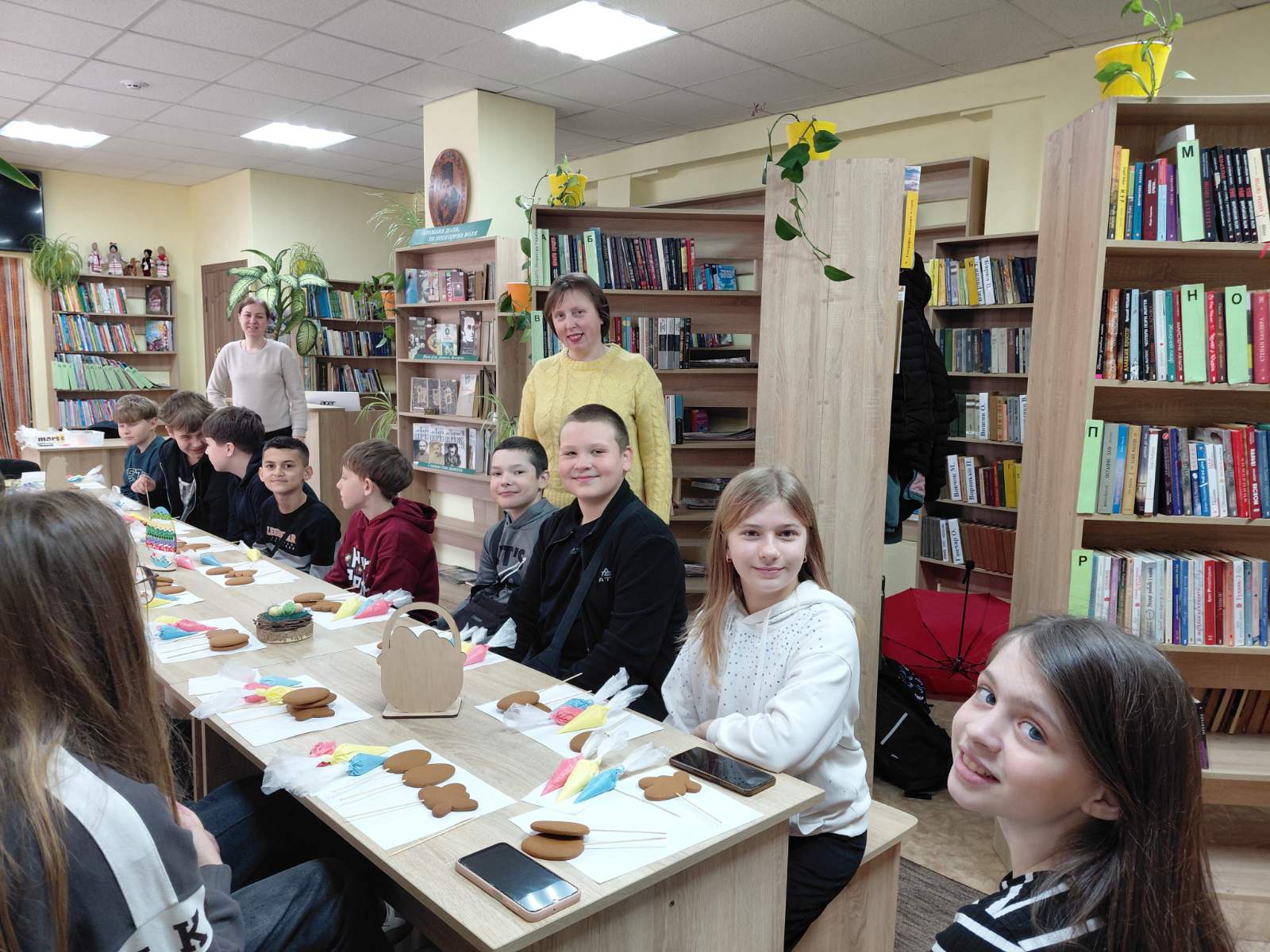 Напередодні світлого свята Великодня учні 6- Г класу взяли участь у майстер-класі з розпису імбирного печива. Захід відбувався в затишній атмосфері бібліотеки-філіалу №9.