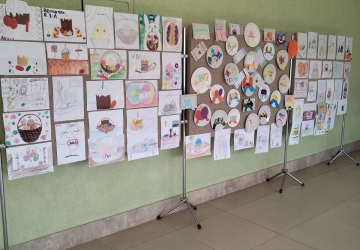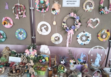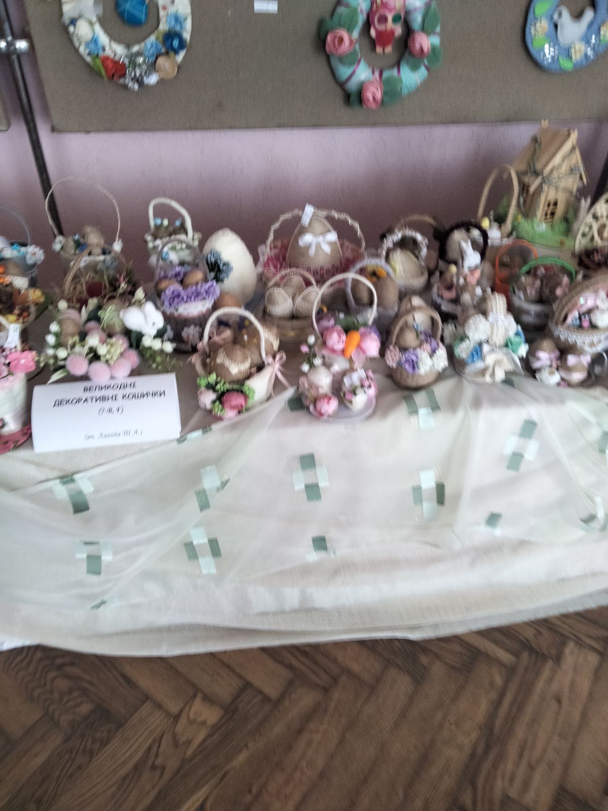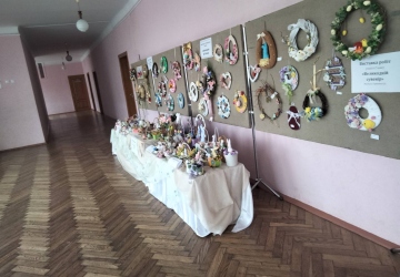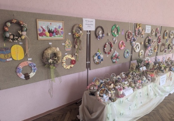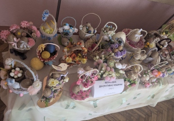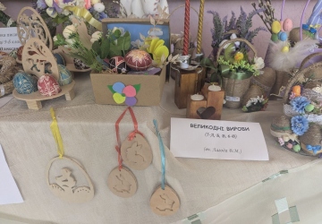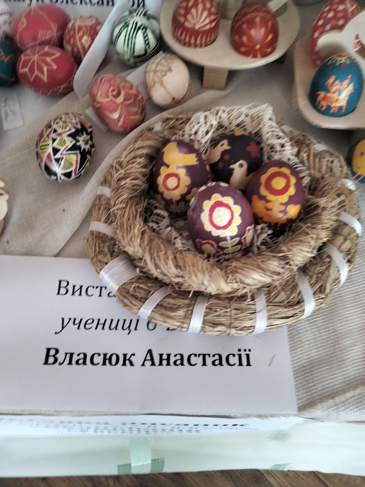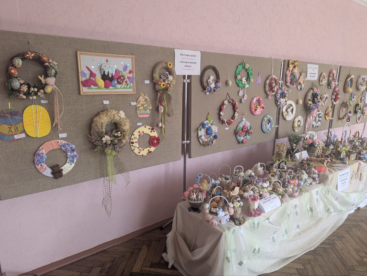 І яких тільки тут витворів не було! Тут і писанки, і мальованки, і святкові корзини з великодніми зайцями та квітами, і пасхальні декоративні віночки, і дизайнерські сувенірні яйця, підсвічники з фанери, деревини та картону, і малюнки та аплікації.