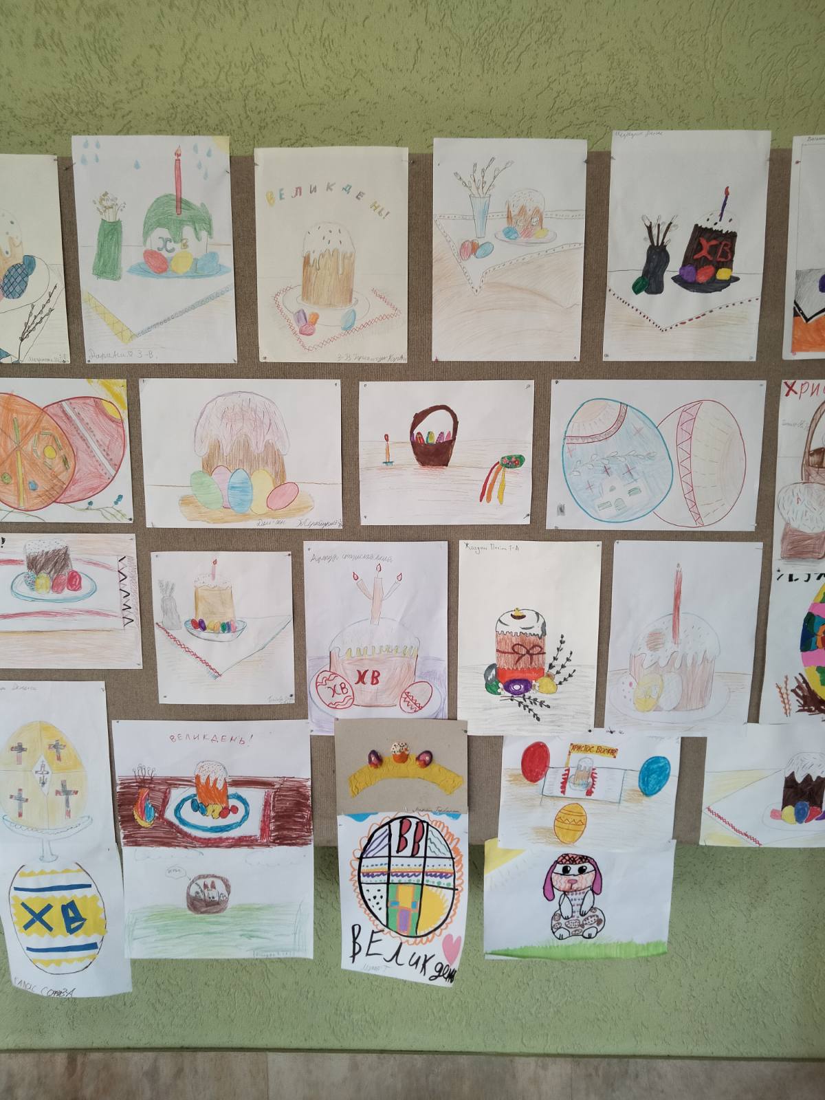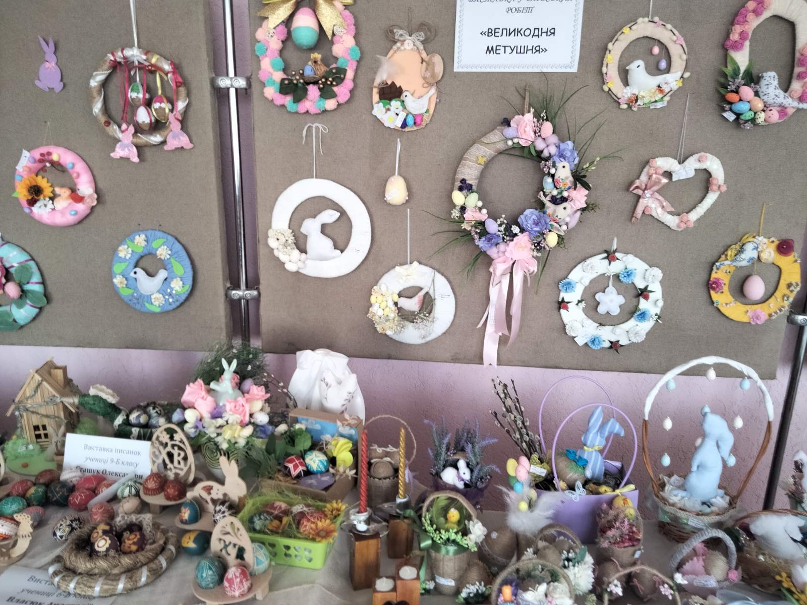 На уроках, заняттях гуртків здобувачі освіти пишуть писанки й мальованки, виготовляють святкові композиції, малюють малюнки та створюють аплікації на великодню тематику. Уже напередодні свята Воскресіння учні 6-9 класів разом зі своїми вчителями підготували й представили на огляд виставку робіт «Великодня метушня» та виставу робіт початкових класів «Великдень».