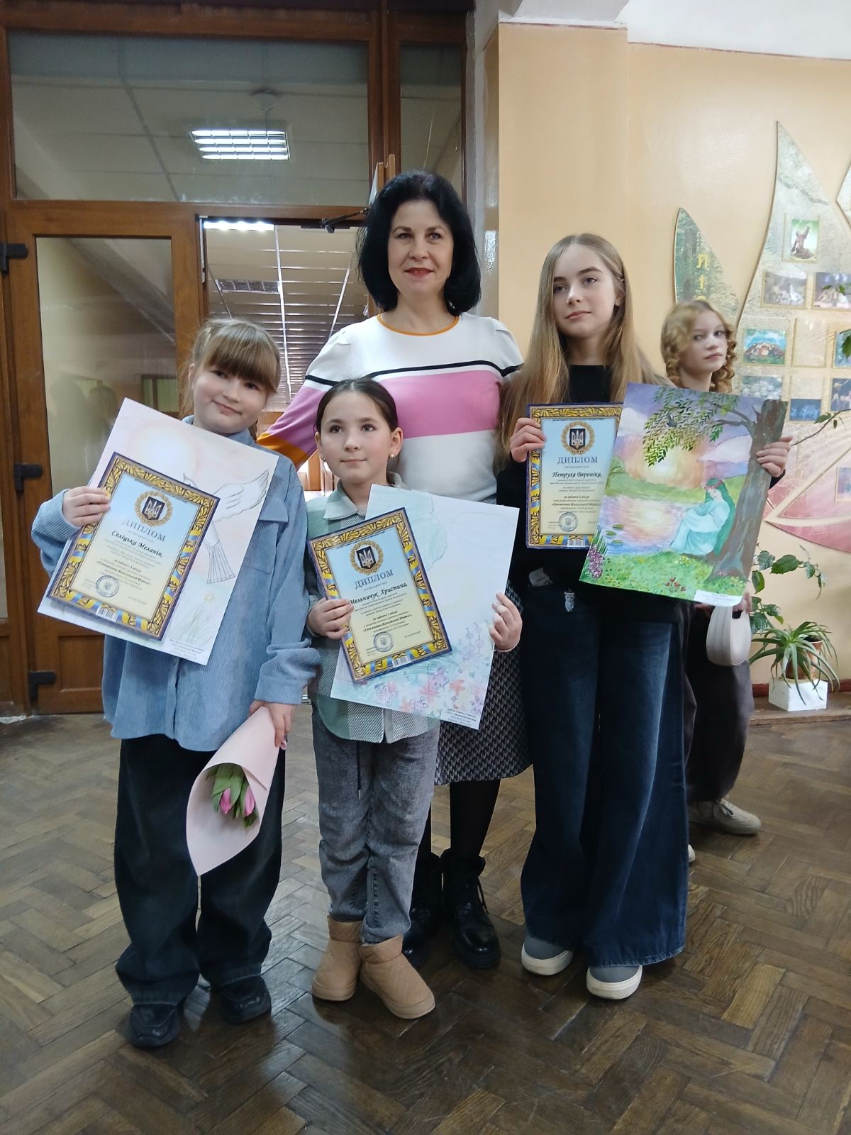 Дипломами переможців і подарунками для творчості відзначили талановитих юних митців нашого ліцею: у старшій віковій категорії 1 місце - Петруха Вероніка (6-В), у молодшій віковій категорії 1 місце в Селіцької Меланії та Мельничук Христини (3-В клас) (керівник Мазур Юлія Михайлівна).