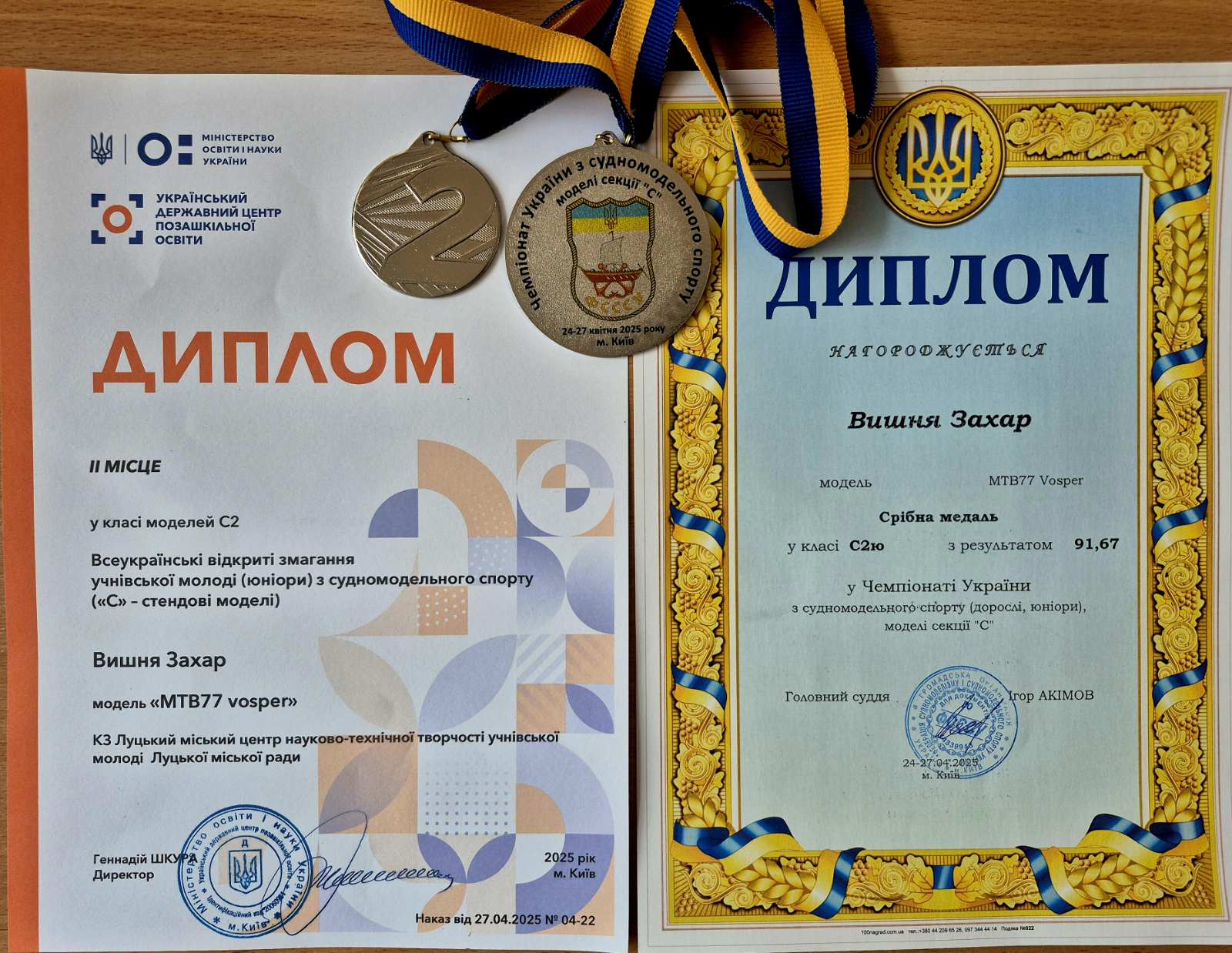 Вітаємо Захарія Вишню, учня 4-Д класу, з перемогою (ІІ місце) у Всеукраїнських відкритих змаганнях учнівської молоді (юніори) з судномодельного спорту та Чемпіонаті України з судномодельного спорту (дорослі, юніори). Бажаємо подальших здобутків та перемог!