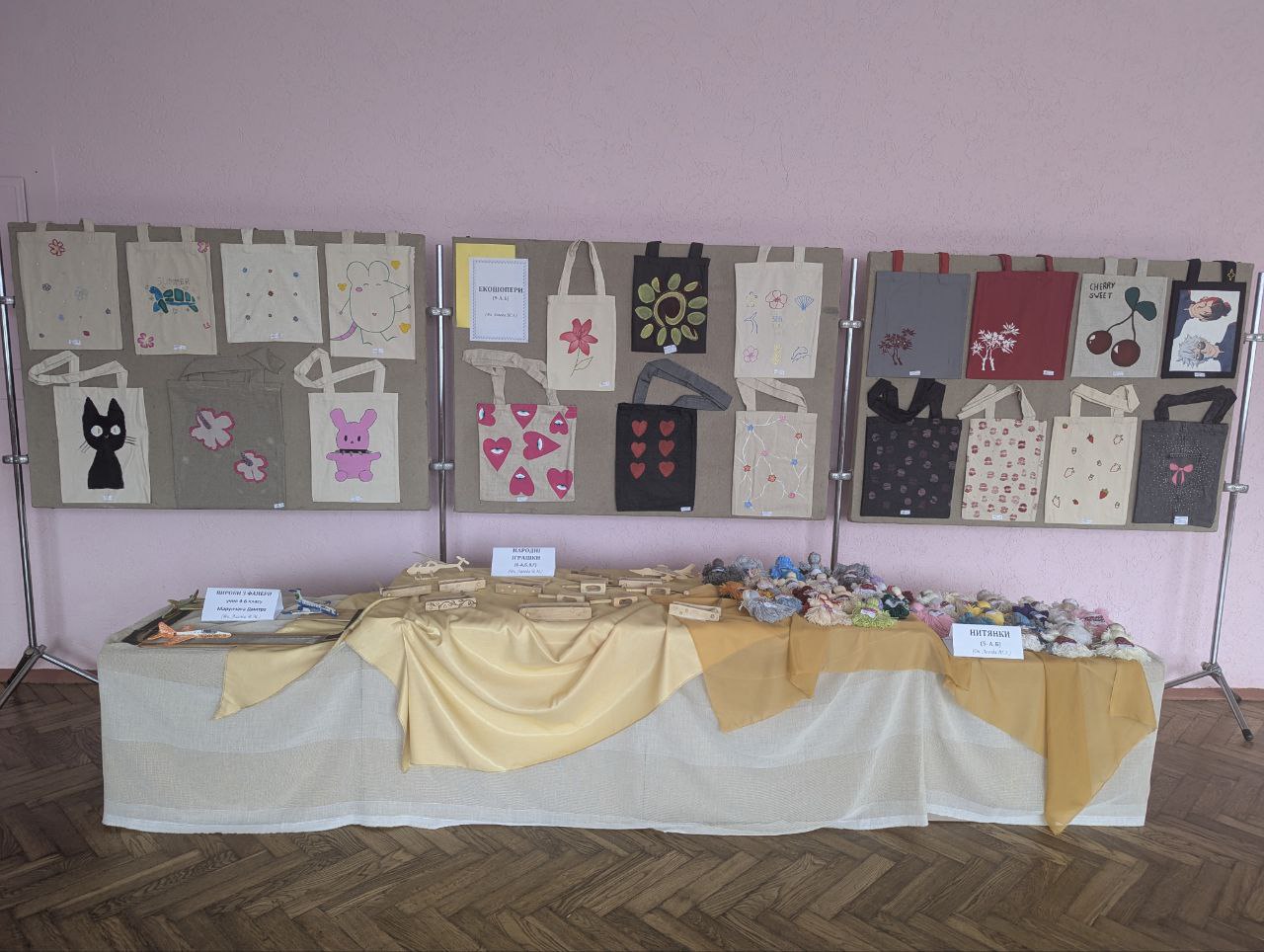 У рамках Днів науки і техніки в ліцеї відбулися виставки екошоперів ліцеїсток 9-А, 9-Б класів, нитянок - 5-А, 5-Б класів (учителька Лагода Тетяна Анатоліївна), народних іграшок з дерева - 6-А, 6-Б, 6-В, 6-Г класів ( учитель Лагода Володимир Макарович).