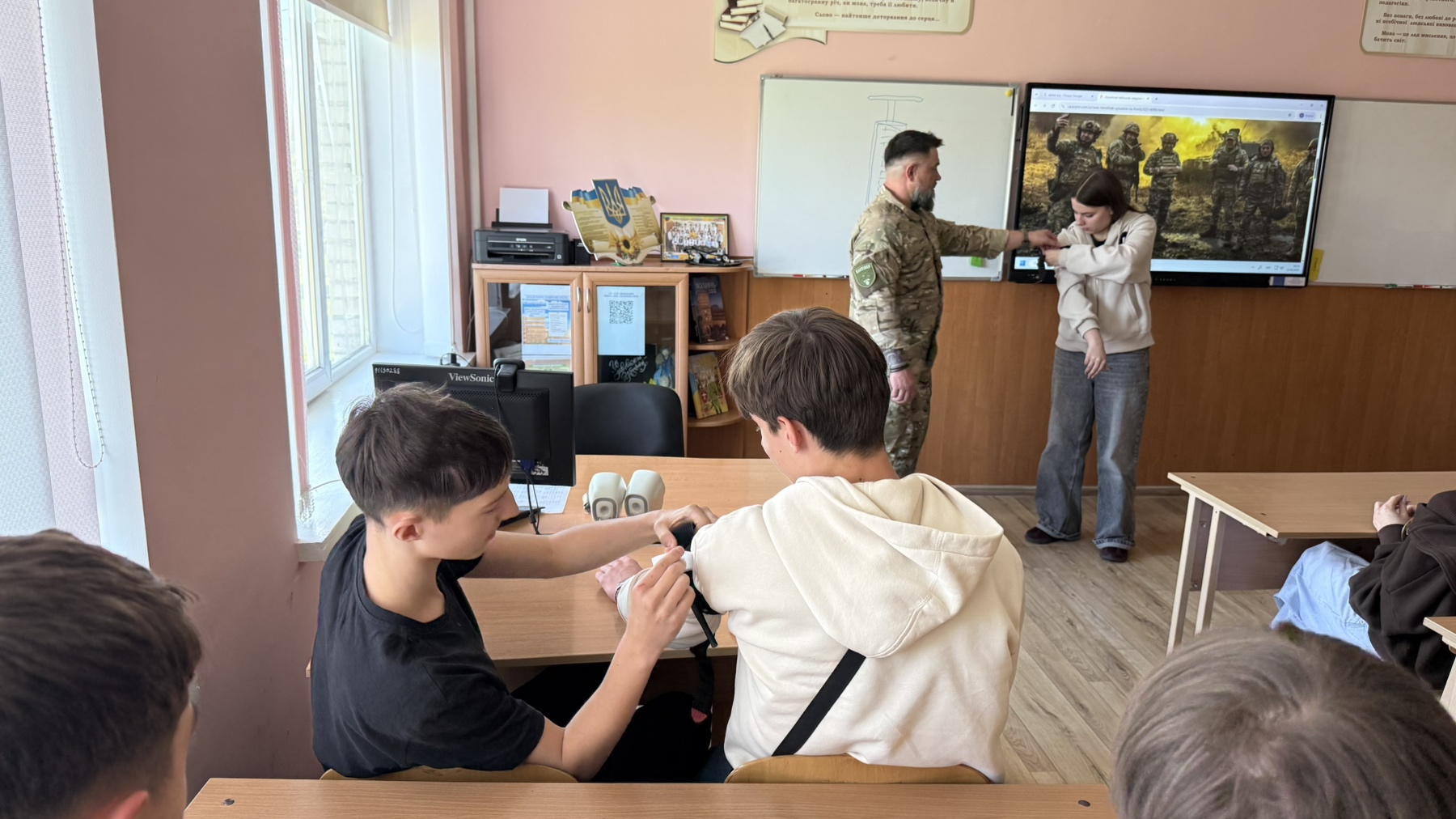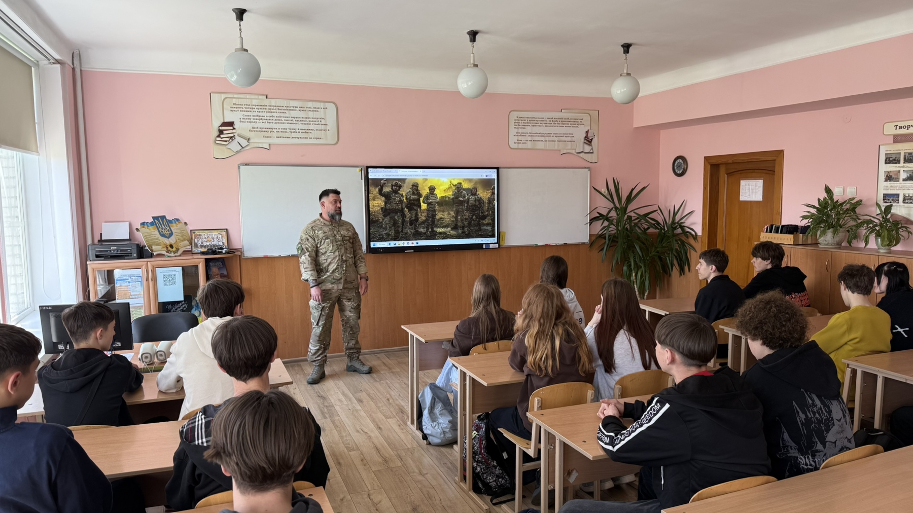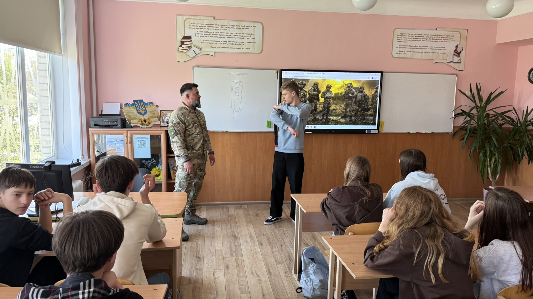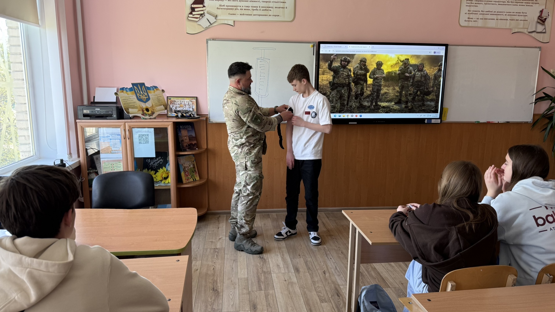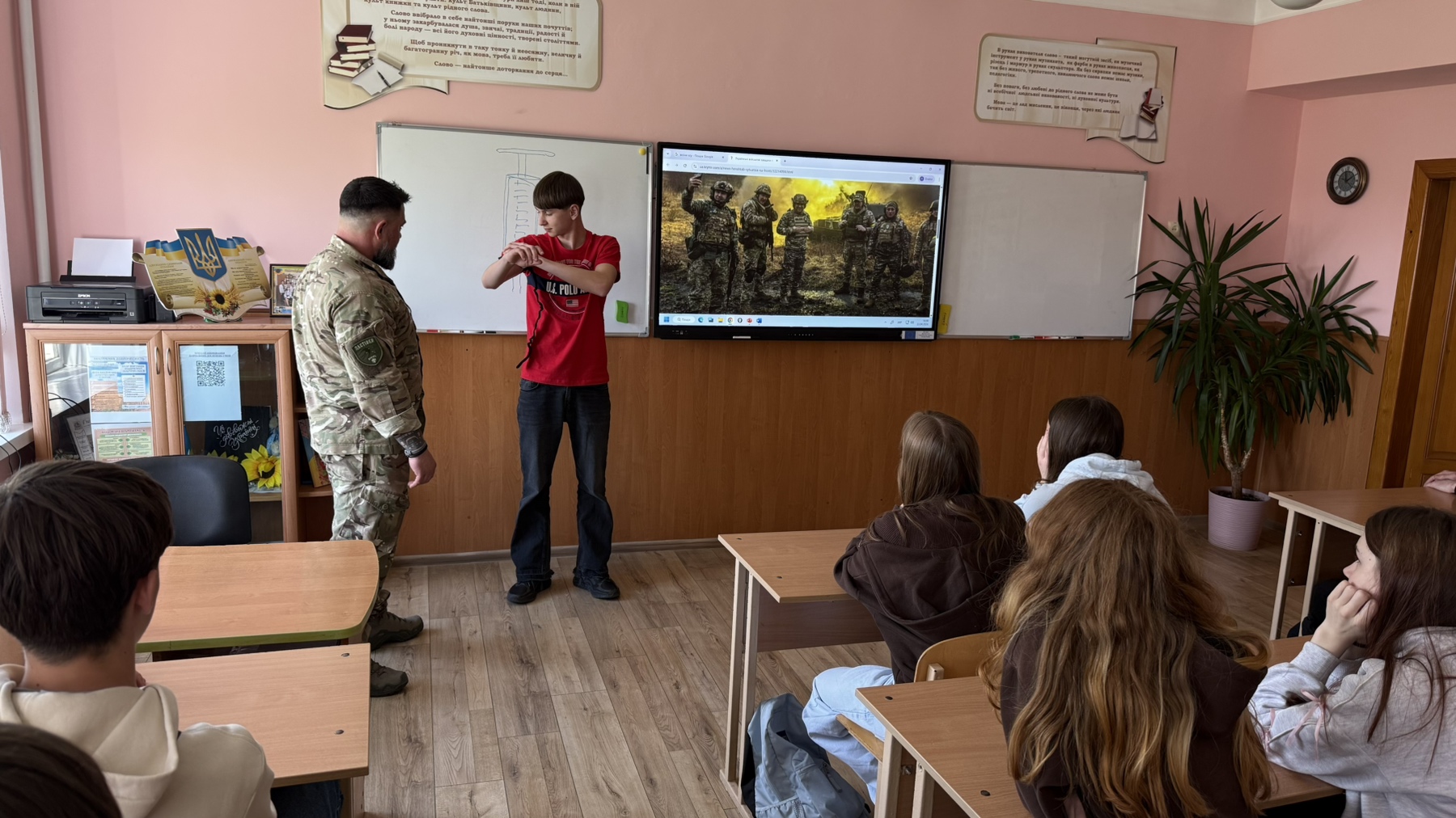 У 9-Б класі відбулася надзвичайно важлива та практична зустріч із людиною, яка знає ціну кожної секунди на полі бою, військовим медиком, учасником бойових дій, ветераном, головою ГО «Рух справжніх» Максимом Денисенком.